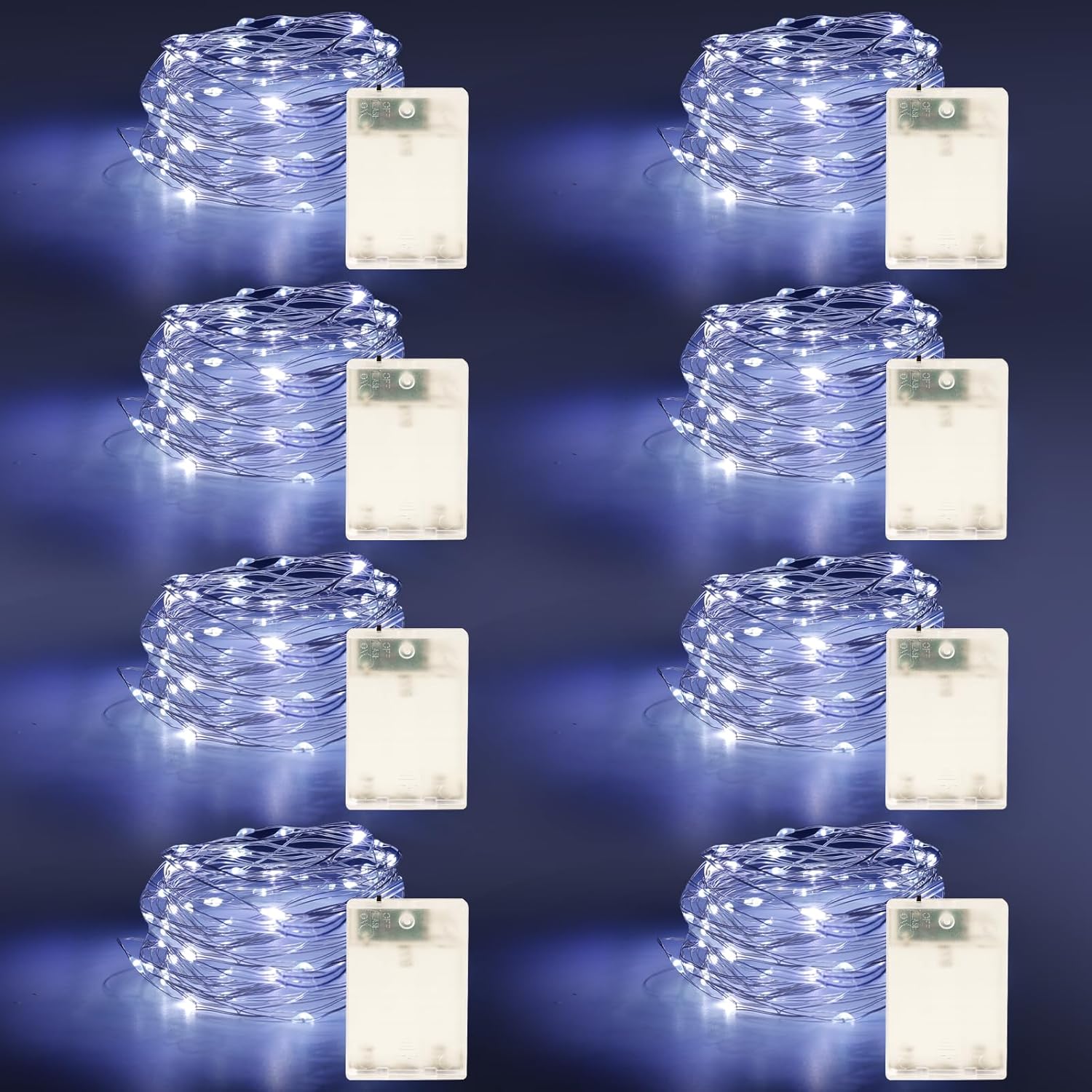 Fairy Lights Battery Operated String Lights 16.4ft 50LED Flashing and Constant Light Waterproof Silver Wire for Christmas DIY Party Bedroom Wedding (White, 8 Pack)