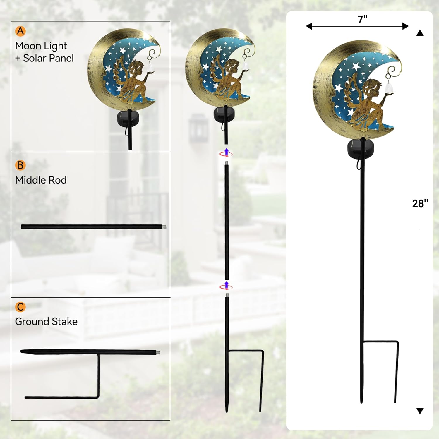 • Solar-Powered Light: Equipped with a built-in solar panel, this angel moon stake charges during the day and automatically lights up at dusk. No wires, no batteries, no fuss—just place it in a sunny spot and enjoy the warm, ambient LED glow each evening