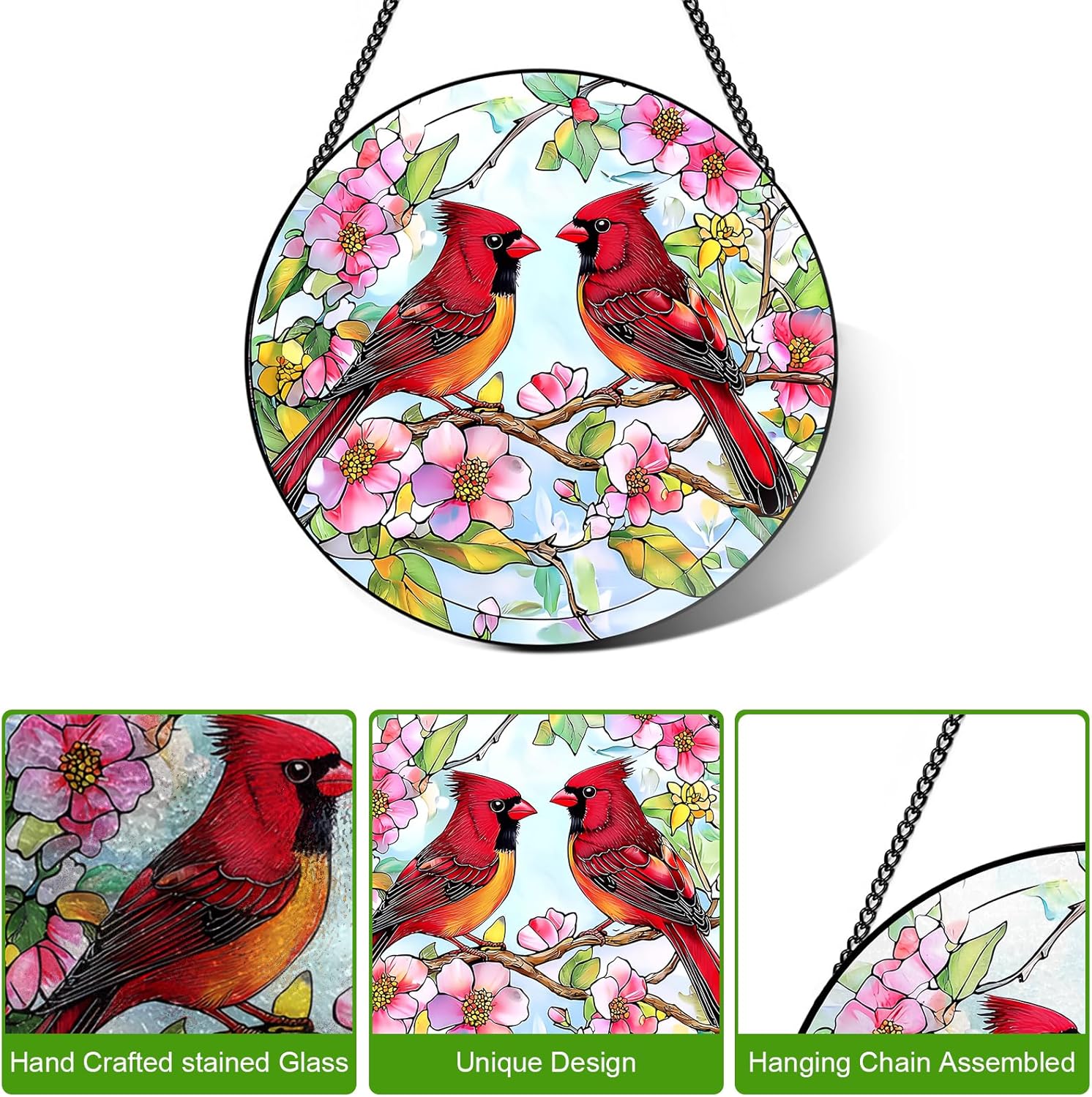 • Exquisite Design: Finished with vibrant stained glass, this Red Cardinal suncatcher captures sunlight beautifully, adding warmth to any space