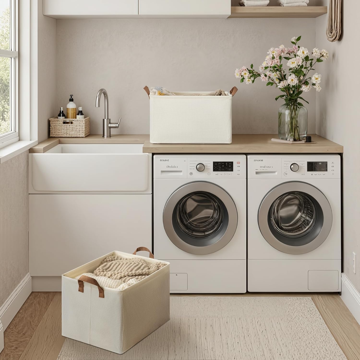 • Handle with Ease: With the 2 PU handles securely riveted to the sides of the storage bin, you can easily carry items without tearing the handles.