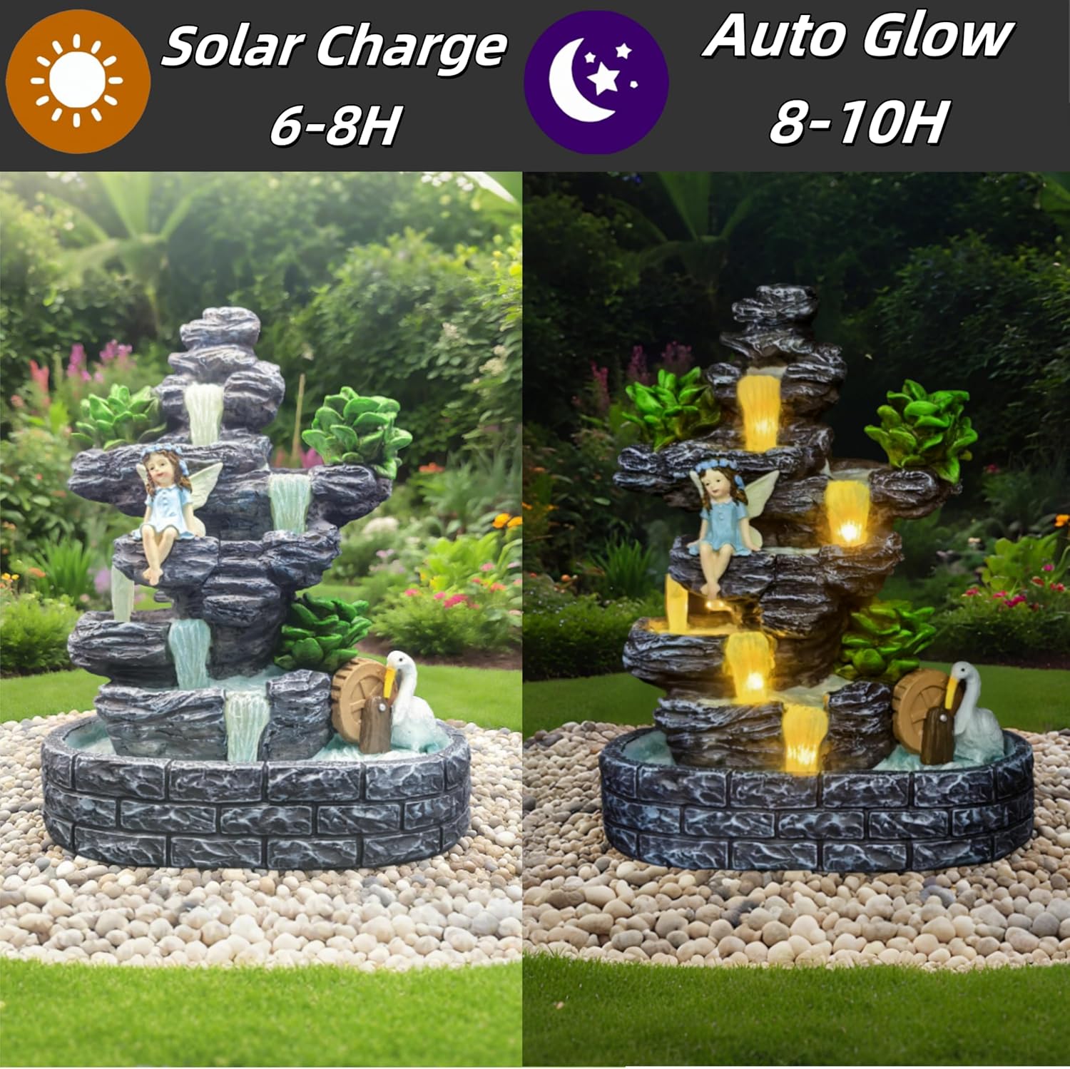 • Fairy Glowing Waterfall Stone House:This all-in-one art piece combines a multi-tiered rockery structure with hidden solar LED lights, creating a magical illusion of glowing water flow at night. The compact 6.7×4×9 inch design serves as a whimsical dwelling for fairies, animals, or dwarfs, ideal for elevating micro-landscape decor with the charm of self-illuminating scenery.