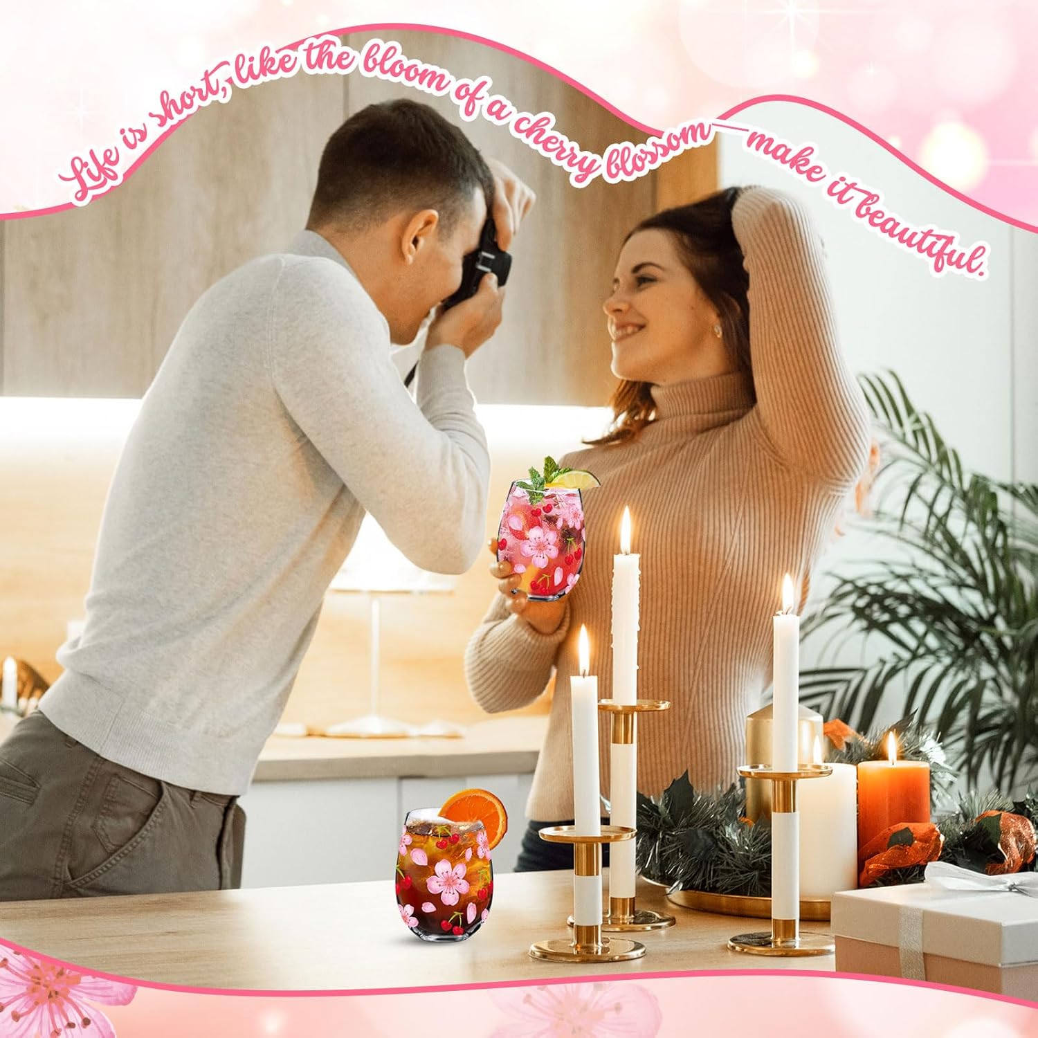 • Package Includes: You will receive 2 cherry and flower stemless wine glasses; This beautiful floral wine glass will enhance your wine tasting or other beverage experience, allowing you to feel the fresh breath of blooming season when drinking, and immerse yourself in a relaxing and pleasant time