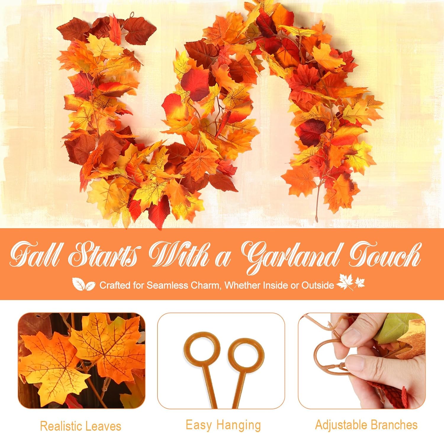 • Vibrant & Odor - Free: Our fall garland boasts excellent colorfastness, retaining vivid hues through seasons for fall decor. Resistant to fading, it maintains the vivid colors of maple leaves, ideal for Thanksgiving decor and fall mantel decor. Odorless, it enhances home mantles, offices, or porches as fall decorations for home porch , fitting seamlessly into fall garland setups like maple leaf garland.