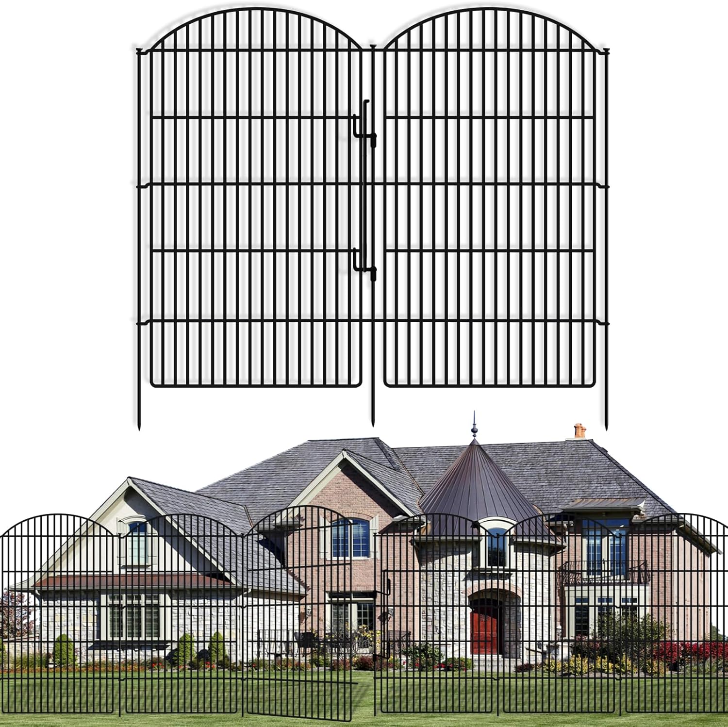 • MORE AVAILABLE SIZE: The classic arch shape design garden fence single piece measures 29" wide, 48" high, 1.4" gap. Comes with 11 metal stakes are 53.66" in height, which can be inserted into about 10.63 inches above the ground, making it strong enough to prevent animals from entering & leaving, dog digging, and even keep rabbits away from your plants. A total of 10 fence panels with a lock, connecting 11 fence stakes, the total length of the garden fence is approximately 24 ft.