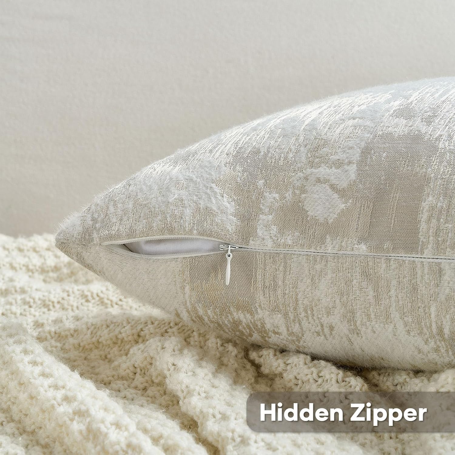 FUTEI Beige White Decorative Throw Pillow Covers 20x20 Inch Set of 2,Soft Faux Cashmere Jacquard - Textured & Cozy Cushion Case,Modern Home Decor for Couch Bed Living Room