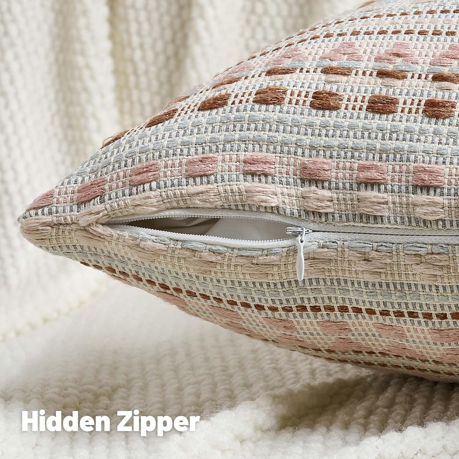 FUTEI Pink Blue Decorative Throw Pillow Covers 12x20 Inch Set of 2,Soft Cozy Chenille Jacquard Textured Pillow Case,Boho Home Decor for Couch Bed Living Room