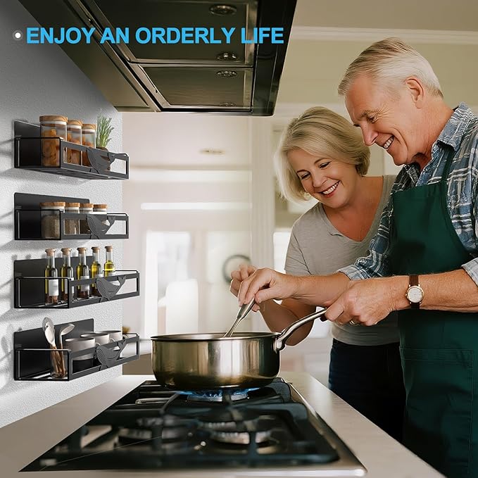 • Space-Saving & Super Organized: Frees up counter space by mounting vertically on the fridge. Keeps spices neatly visible and within easy reach – no more messy cabinets, maximizes kitchen space