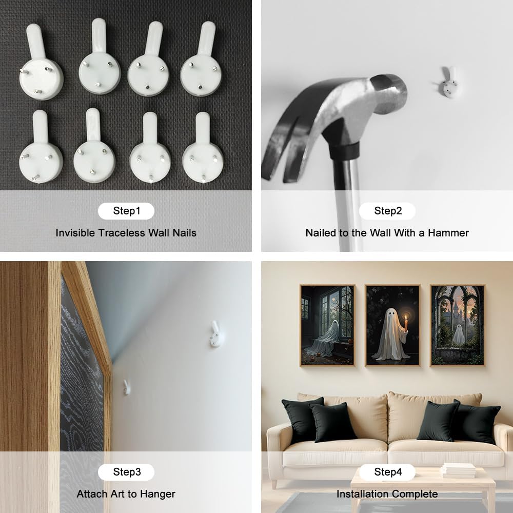 • 【Halloween Cute Ghost Wall Art】This set of three framed paintings features a charming and whimsical take on Halloween ghosts. The soft, spectral imagery creates a spooky yet cozy atmosphere, perfect for decorating during the Halloween season or for adding a touch of mysterious charm to your home year - round. It can be a great conversation starter and a unique addition to your holiday decor collection.