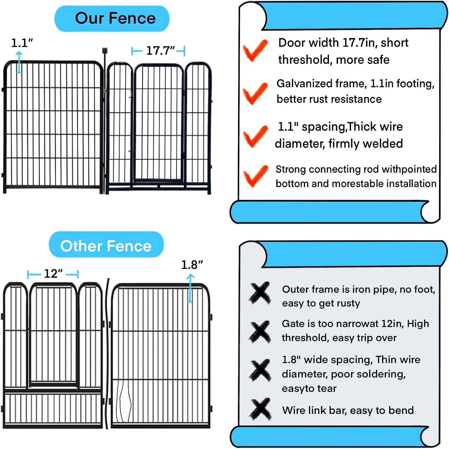 • Dual-Purpose for Indoor and Outdoor Use: This Outdoor Dog Fence Comes with Metal Rods That are 4 Inches Taller Than The Panels. When Used Outdoors, You Can Insert The Rods Into The Ground to Enhance Stability. As An Animal Barrier Fence, It Keeps Small Animals Out of The Garden and Won’t be Knocked Over by Dogs. For Indoor Use, The Fence Rods are Fitted with Rubber Protective Covers to Prevent Floor Scratches During Use.