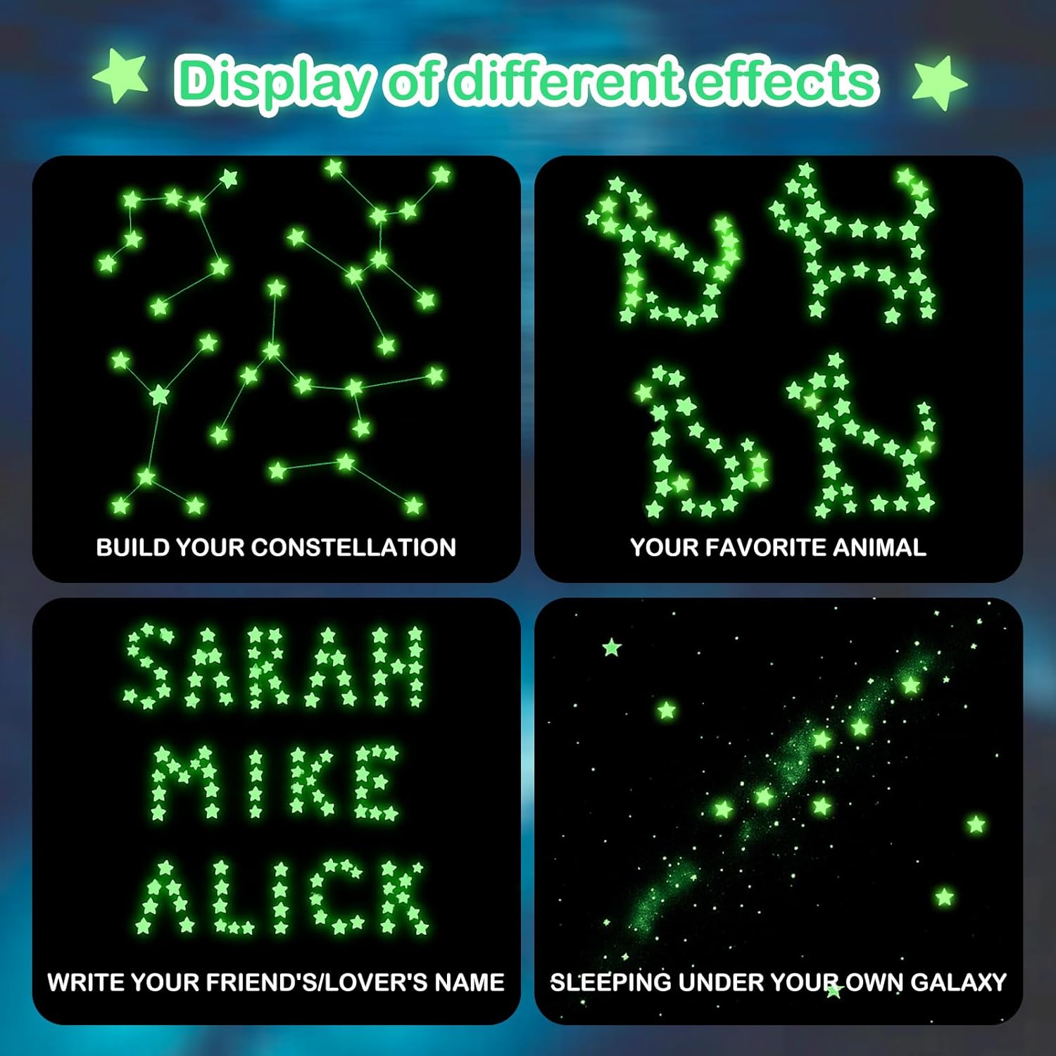 • Improved sleeping environment: Glow in the dark ceiling stickers create a soothing starry sky effect in a dim room. The soft green light reduces spatial disorientation at night, helping you relax and helping your child fall asleep faster. Arrange a star pattern above the head of the bed to turn an ordinary ceiling into a soothing visual aid to improve the sleep cycle
