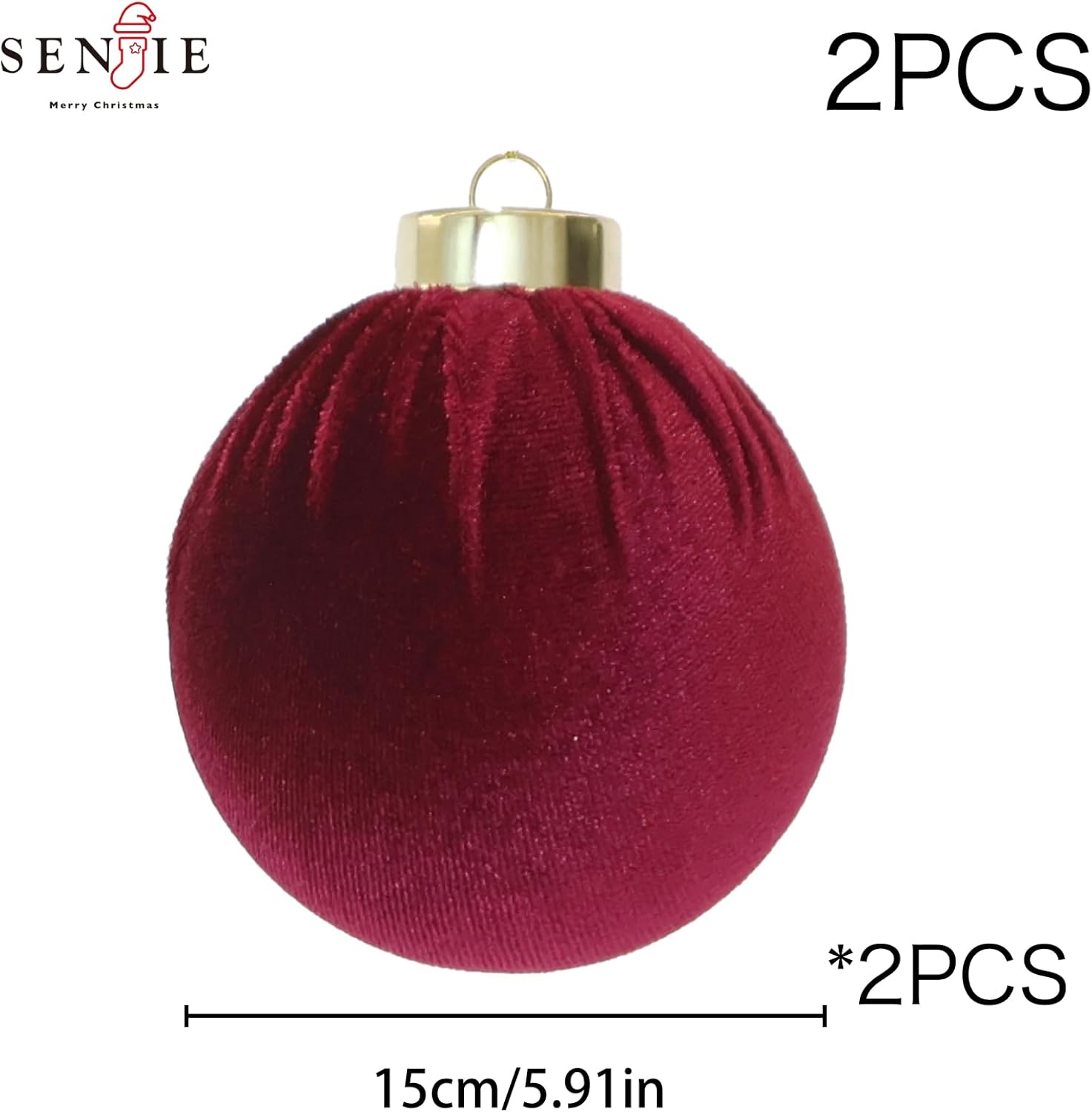 6inch Big Burgundy Velvet Christmas Ornaments, 2pcs Flocked Ornaments Balls Sets for Christmas Tree Decorations