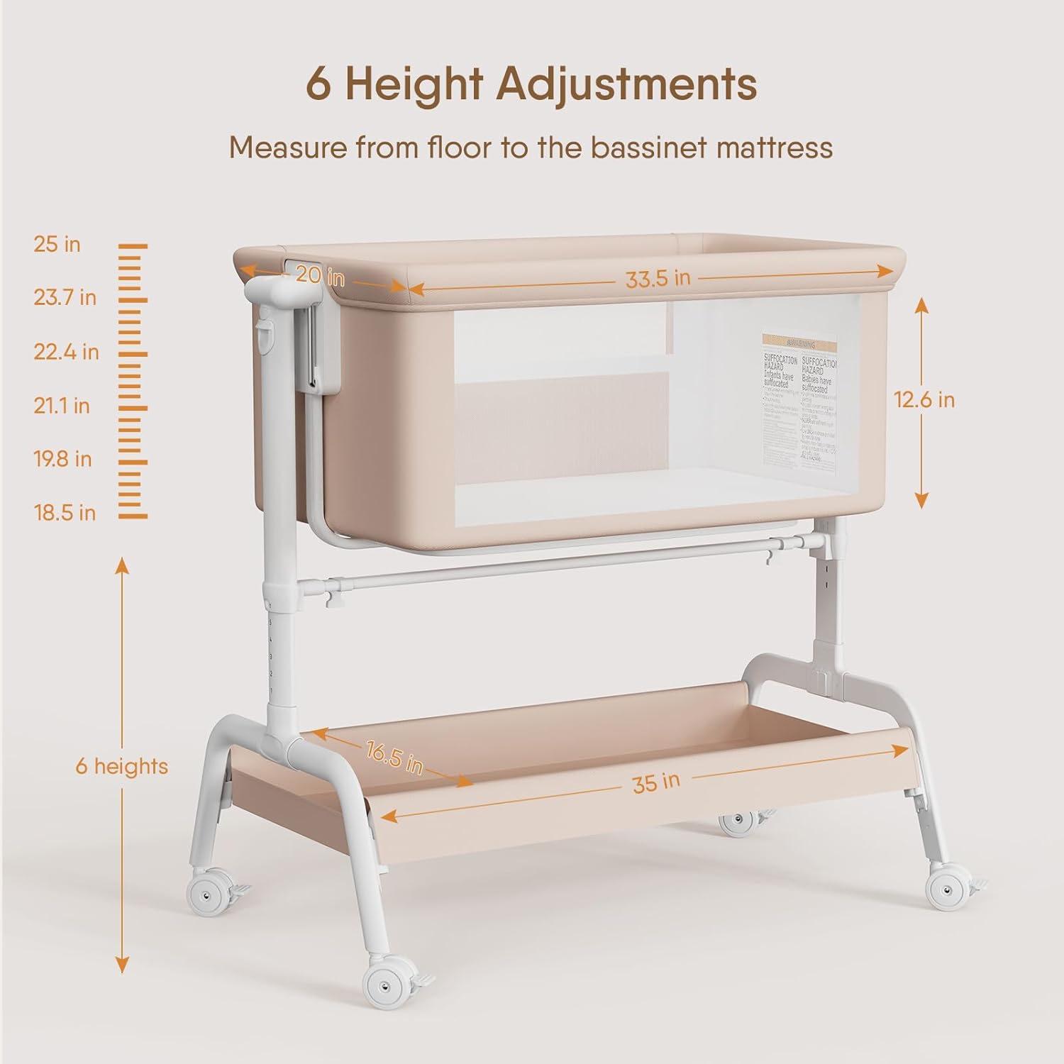 • 【Large Under-Bassinet Storage Basket & Smooth-Rolling Wheels with Brakes】Let you move the bedside bassinet around your home with ease. Lockable brakes ensure safety and stability when stationary.