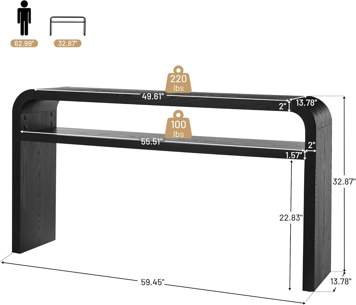 • 【Extra-long Dual-Layer Design】- At 59.45" long, this large black waterfall console table fits perfectly in narrow spaces. The open dual-shelf design provides ample storage while blending seamlessly into your home