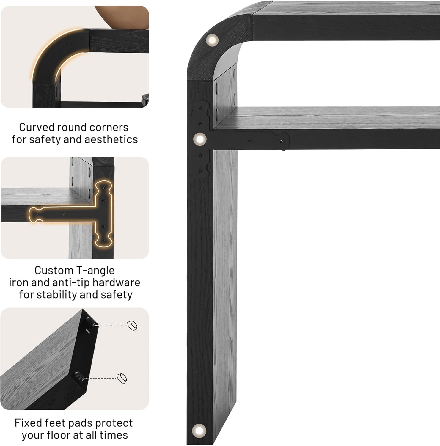 • 【Unique Contour Design】- The long black entryway table features a smooth waterfall edge design with big rounded corners, adding a sleek touch. Its minimalist lines and artistic flair enhance your space with unique character