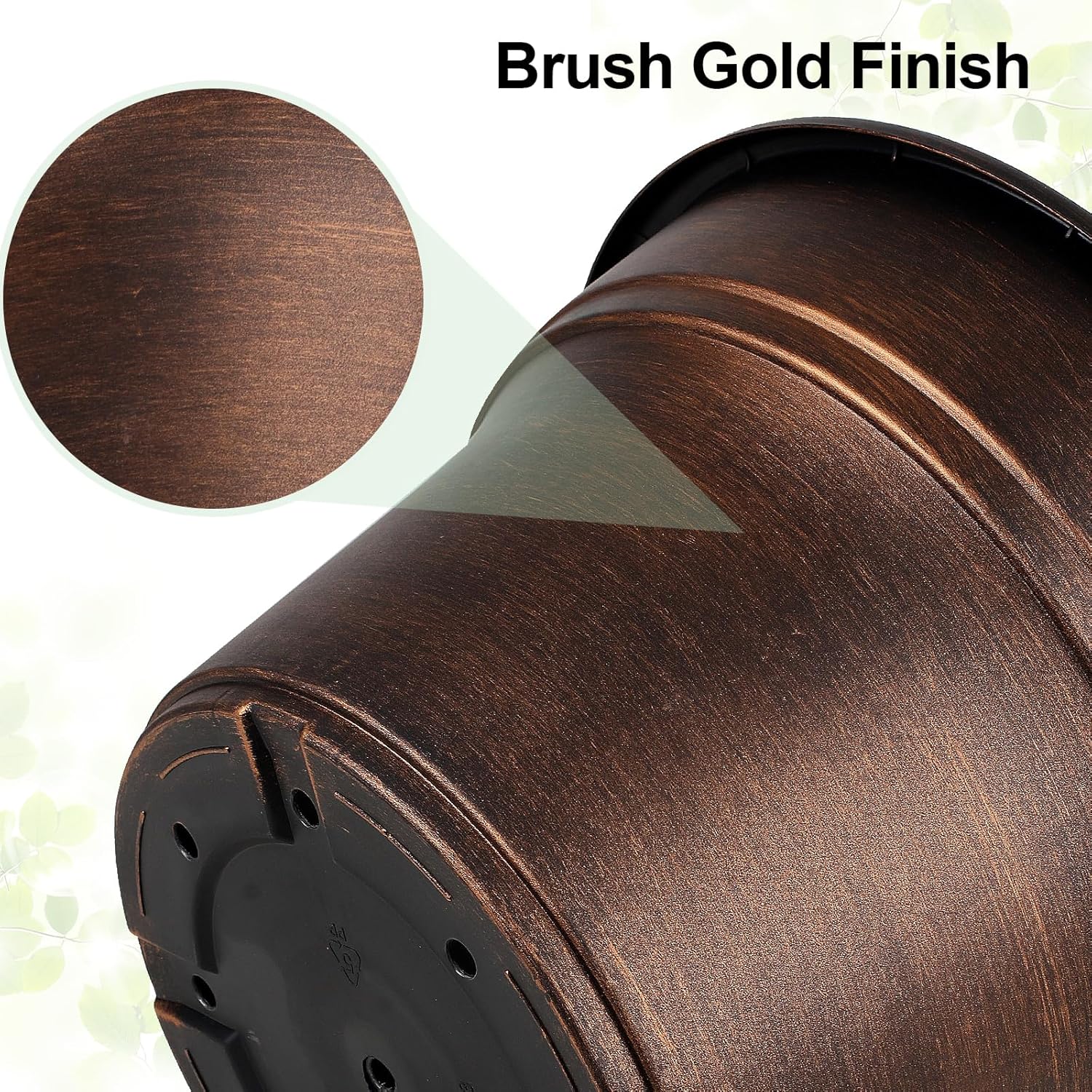 • 【TRADITIONAL DESIGN】Plastic planters for indoor plants with trays are designed in dark gold colors & a classic round look, which allow this pot to fit into any indoor & outdoor setting. With these golded flower pots, it could adds fresh, decorative flair to your home. Decorate your windowsill, desktop, shelf, bedroom, living room, kitchen, garden, office with our 8 inch plastic plant pot.
