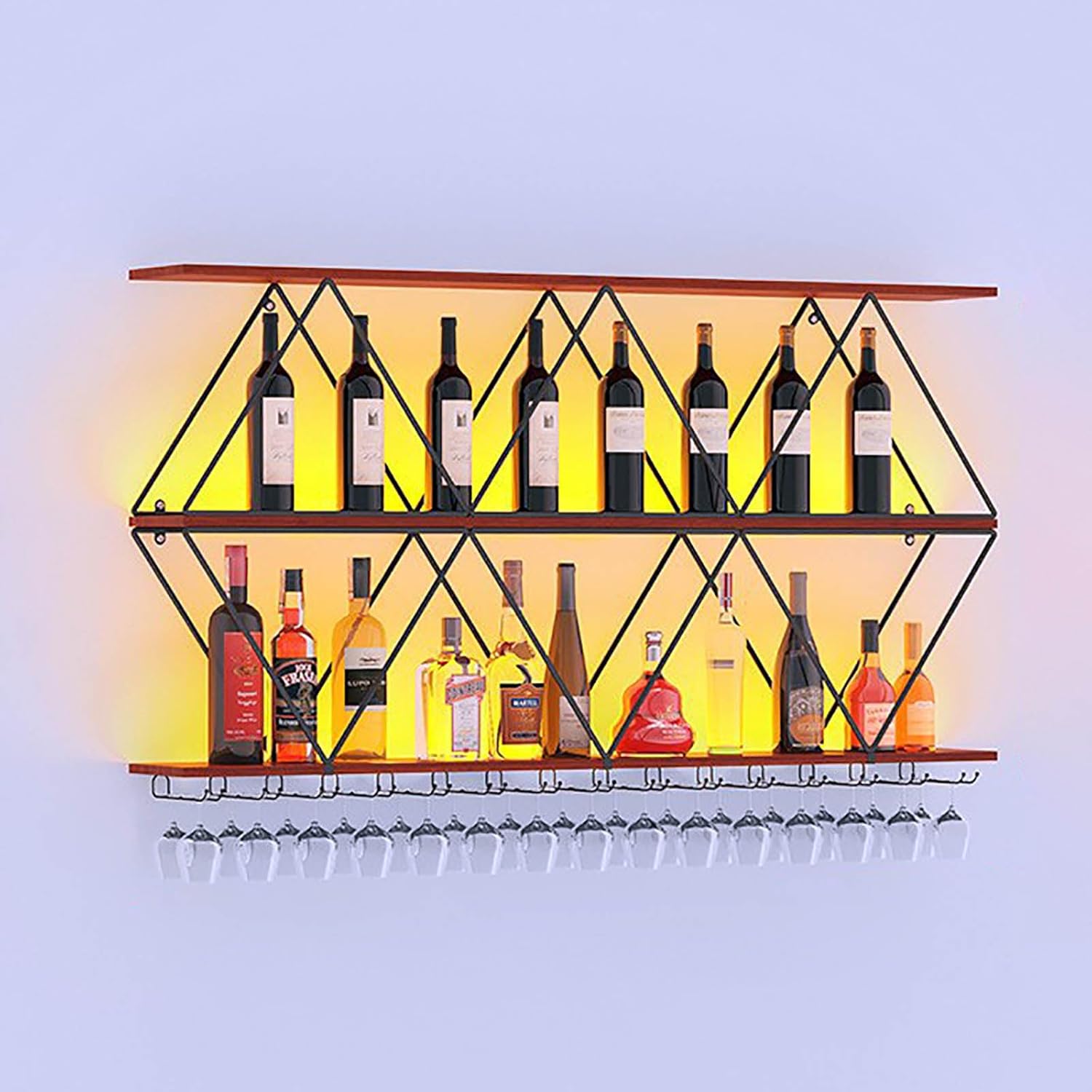 • Multi-function: Well-designed wine glass rack for wine glasses and free placement of wine. This wall-mounted wine rack can not only store wine bottles, but also other items to make your space more sophisticated.