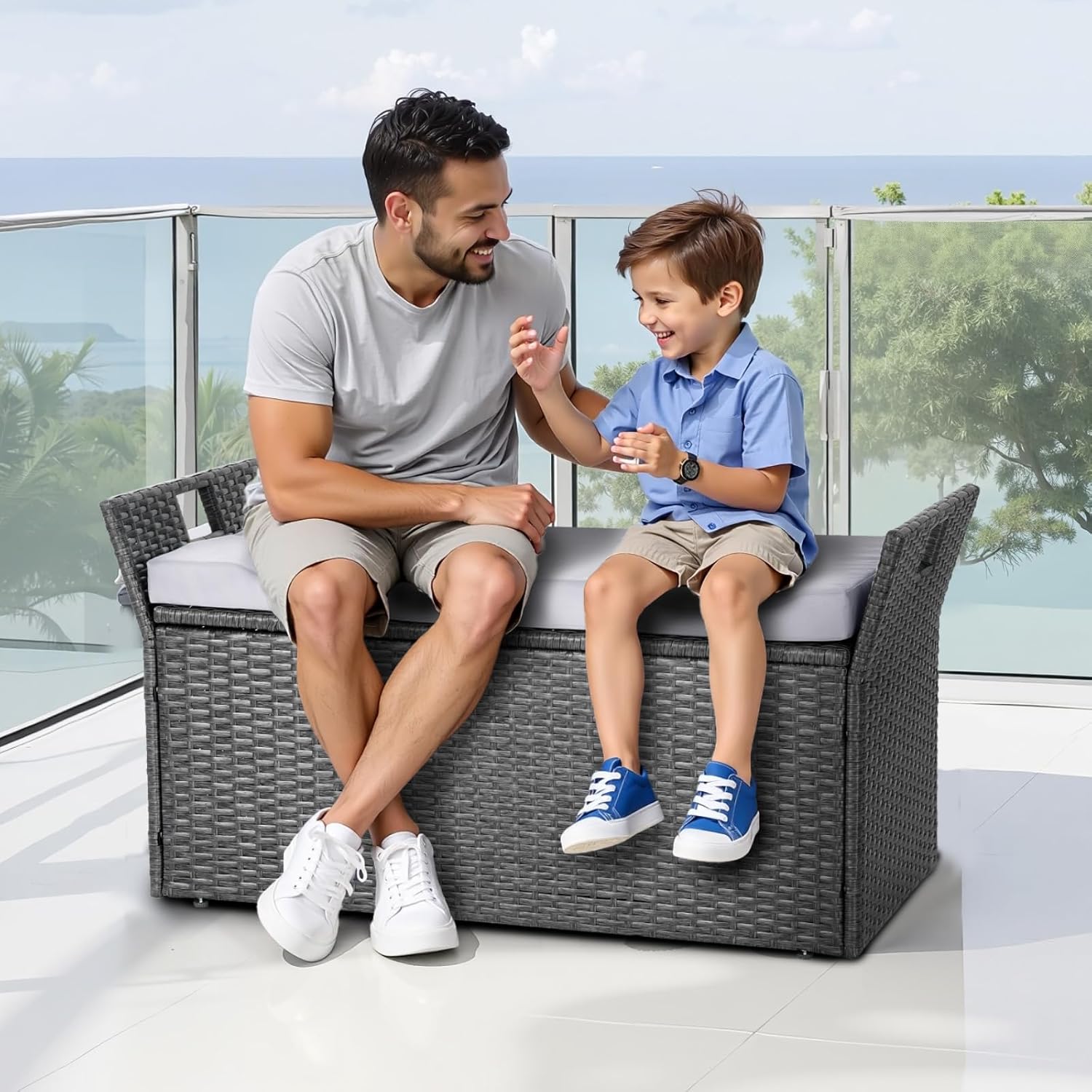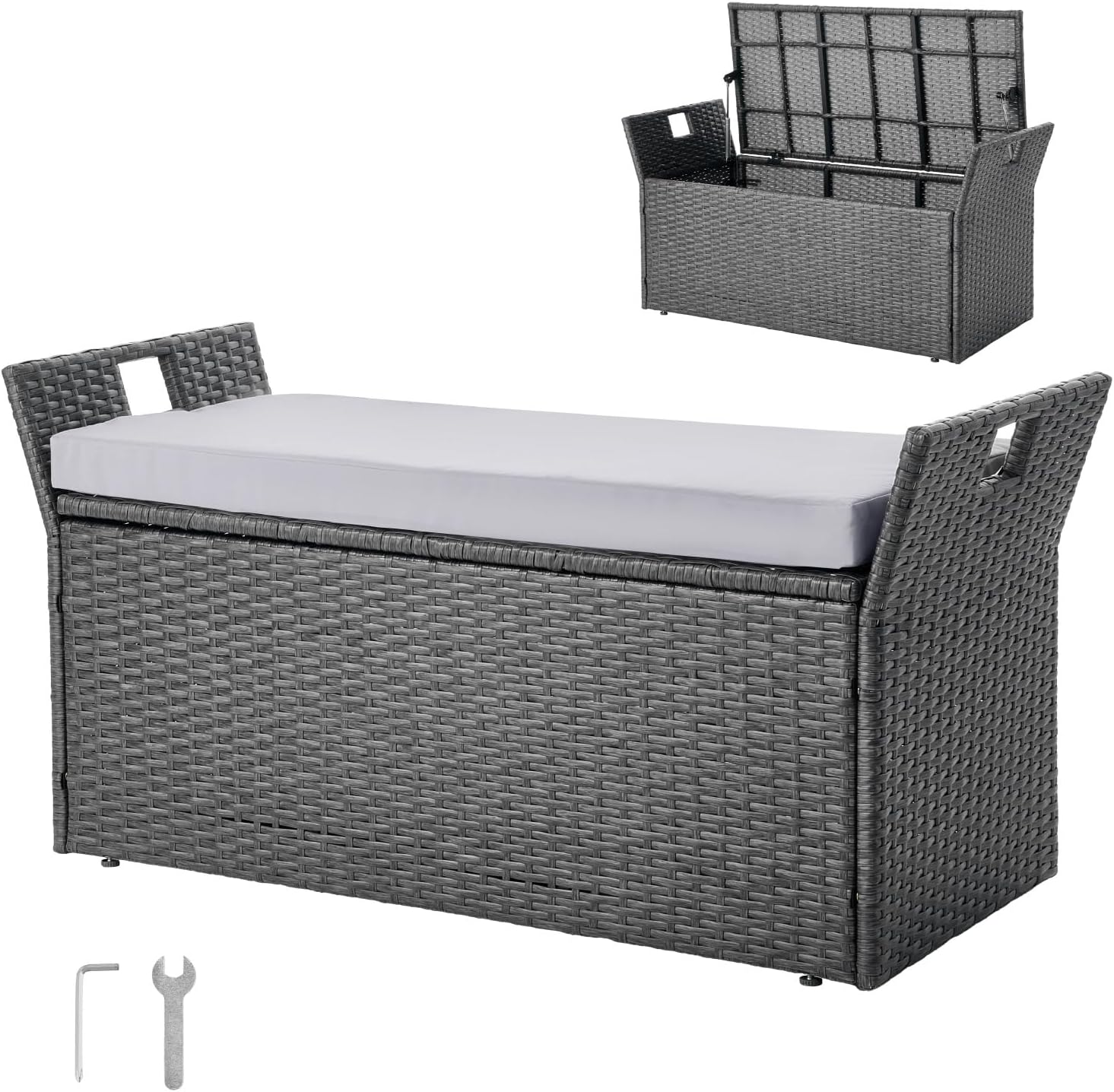 • Sturdy & Durable: Made with alloy steel frame, this PE rattan storage bench supports up to 400 lbs, providing a stable structure that won't easily deform or wobble over time. The PE rattan resists cracking and fading, ideal for long-term outdoor use.