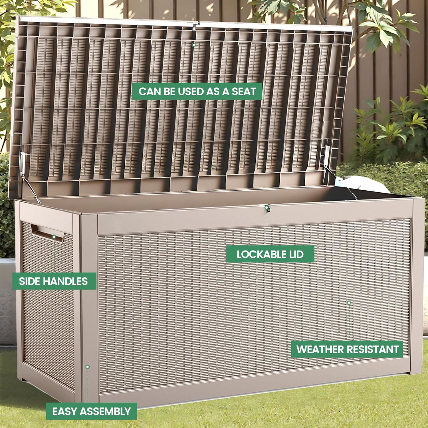 • Stylish and Practical Design:The surface has an attractive rattan effect, which is not only aesthetically pleasing but also includes a lockable lid for added security and privacy