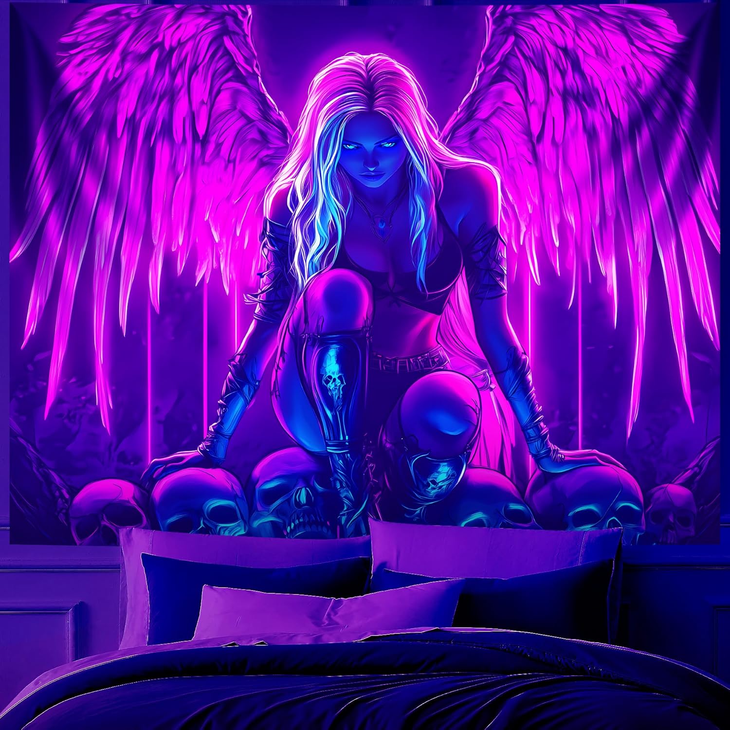 Blacklight Tapestry,WingTapestry Glow In The Dark,UV Reactive Black Light Upright Posters Wall Hanging for Bedroom Dorm Living Room Backdrop Decor (wing8, 90L" x 70W")