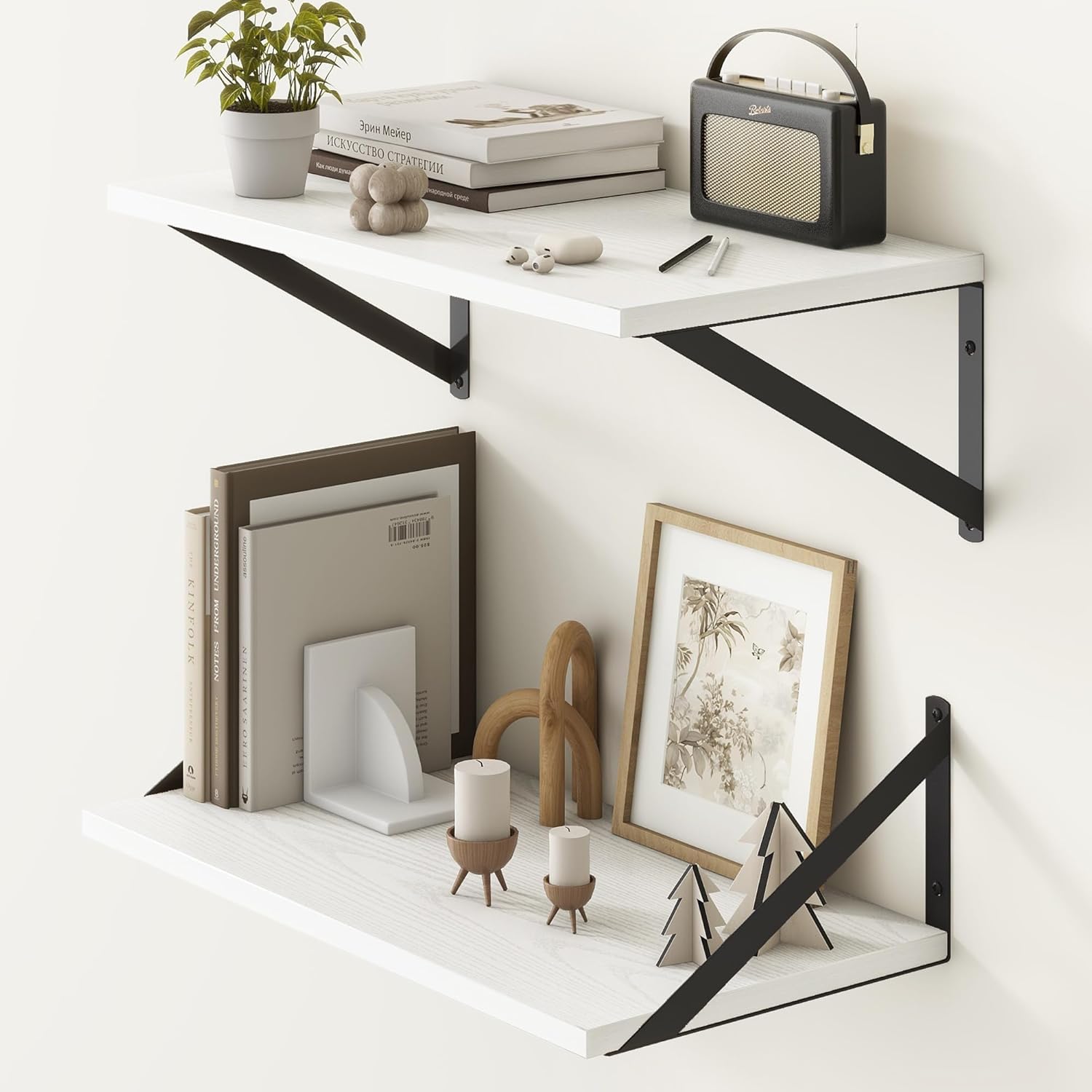 Fun Memories 20 Inch Floating Shelves for Wall, White Bathroom Shelves Set of 2, 10 Inch Deep Wall Shelf for Bedroom, Kitchen, Large Home Decor Shelves Farmhouse Storage Shelf