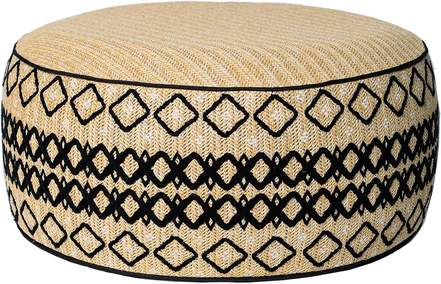 Outdoor Inflatable Ottoman with Air Pump, Embroidery Patio Footrest Stool D21”x H9”, Round Pouf Ottoman with Portable Handle Suitable for Garden, Camping, Bedroom, Living Room