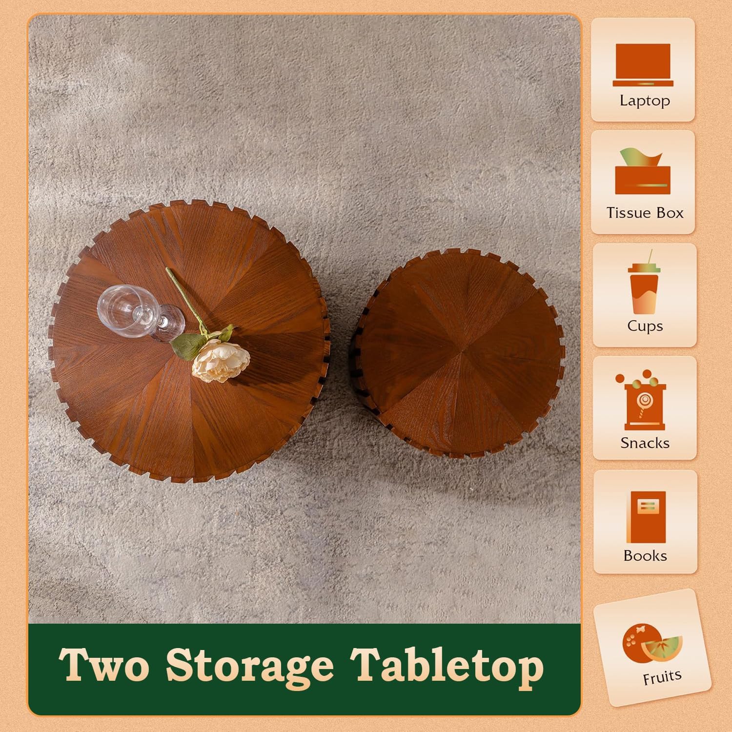 • A Fusion of Modern and Classic Styles: The 2 piece nesting coffee table combines faux wood grain texture with sleek circular form, making it adaptable to both contemporary and traditional interiors. Whether in a minimalist setting or alongside vintage décor, the nesting coffee tables for living room harmonizes effortlessly with diverse styles.