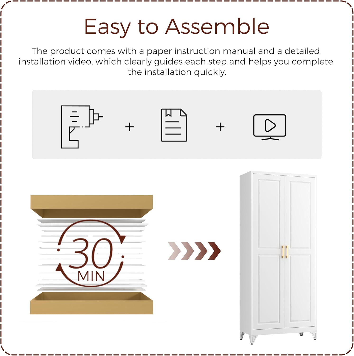 • 【Easy Assembly】The assembly of the tall cabinet is very simple, with clear part labels and step-by-step instructions. If you encounter any issues during setup, please feel free to contact us