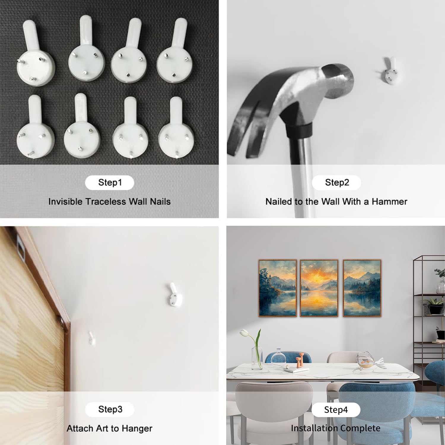 • [Easy to Hang] The size of this set of abstract scenery painting is 16X24 inches (40X60cm).The package comes with a hanging kit inside,which can be hung up very easily.First,determine the installation position and then fix the nails.Just hang the frame on the nails