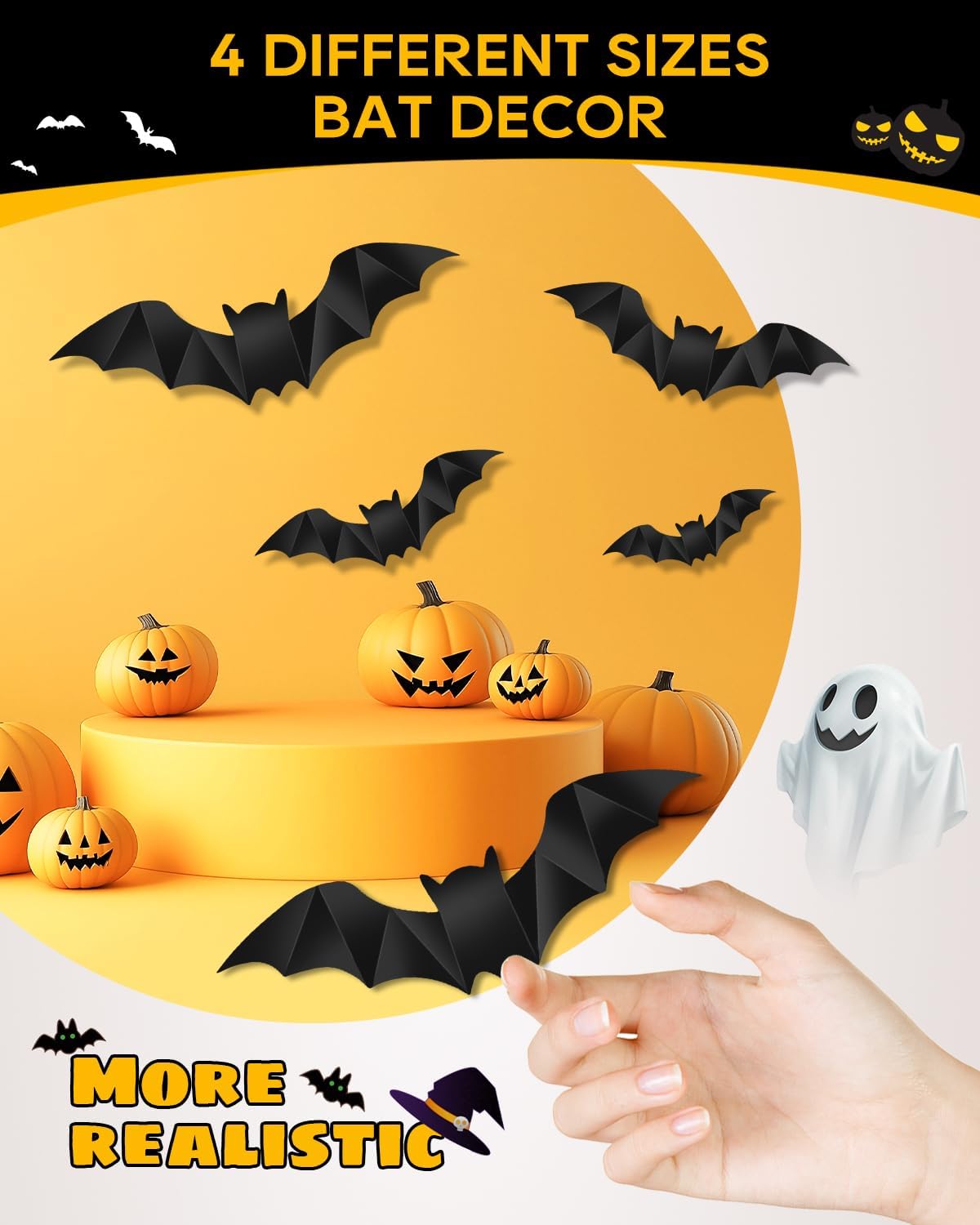 • 3D Bats Wall Decor: Create a haunted house effect with our peel-and-stick 3D halloween bats stickers! Made of flexible vinyl, they cling to walls, windows, or mirrors without residue. Includes 16 bats in varying 4 sizes for a dynamic flying illusion