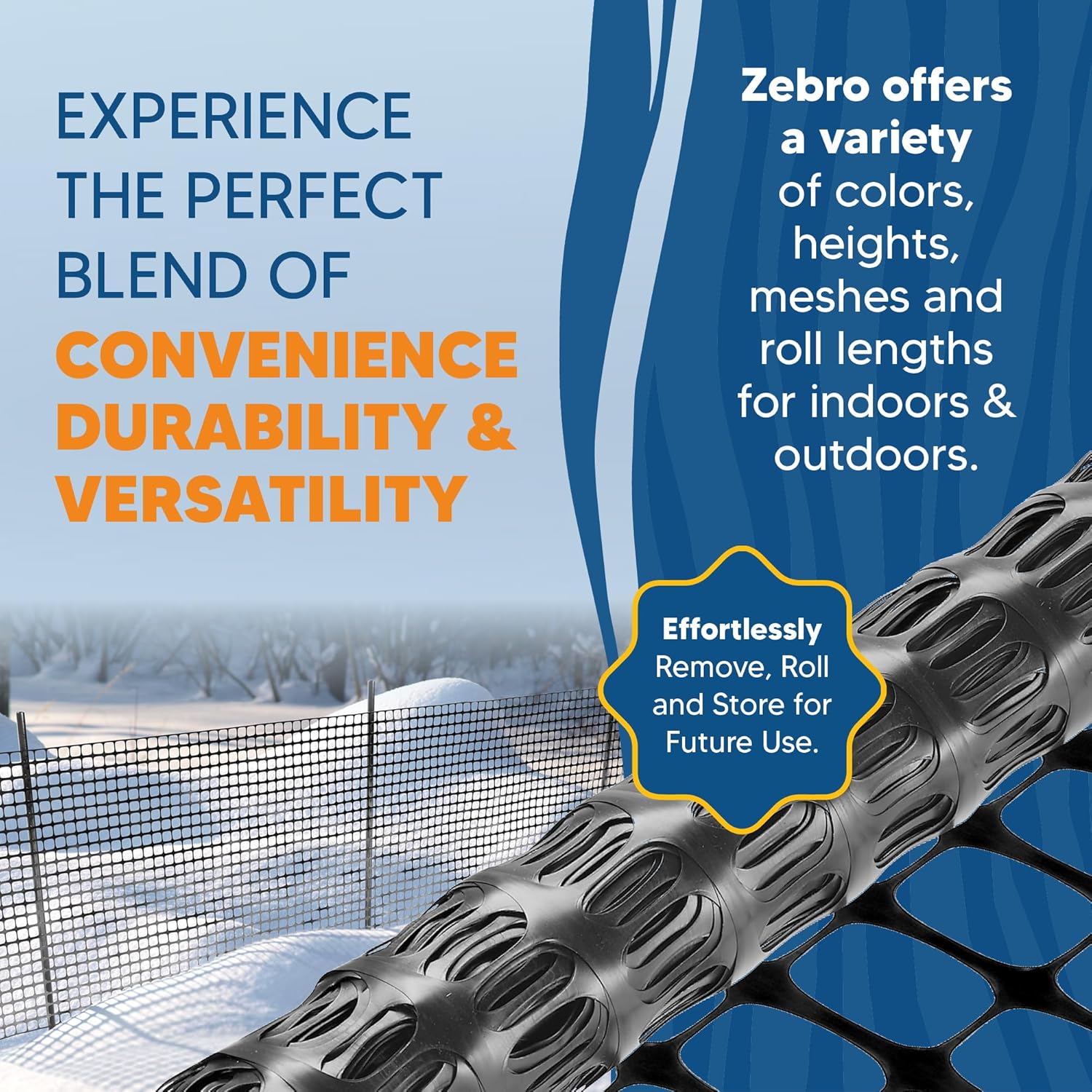 ZEBRO 4' x 50' Black Plastic Garden Fence Roll – Light Duty Mesh Fencing for Temporary Fence, Snow, Garden Netting, Animal Barrier, Agricultural Fencing & Lawn Protection