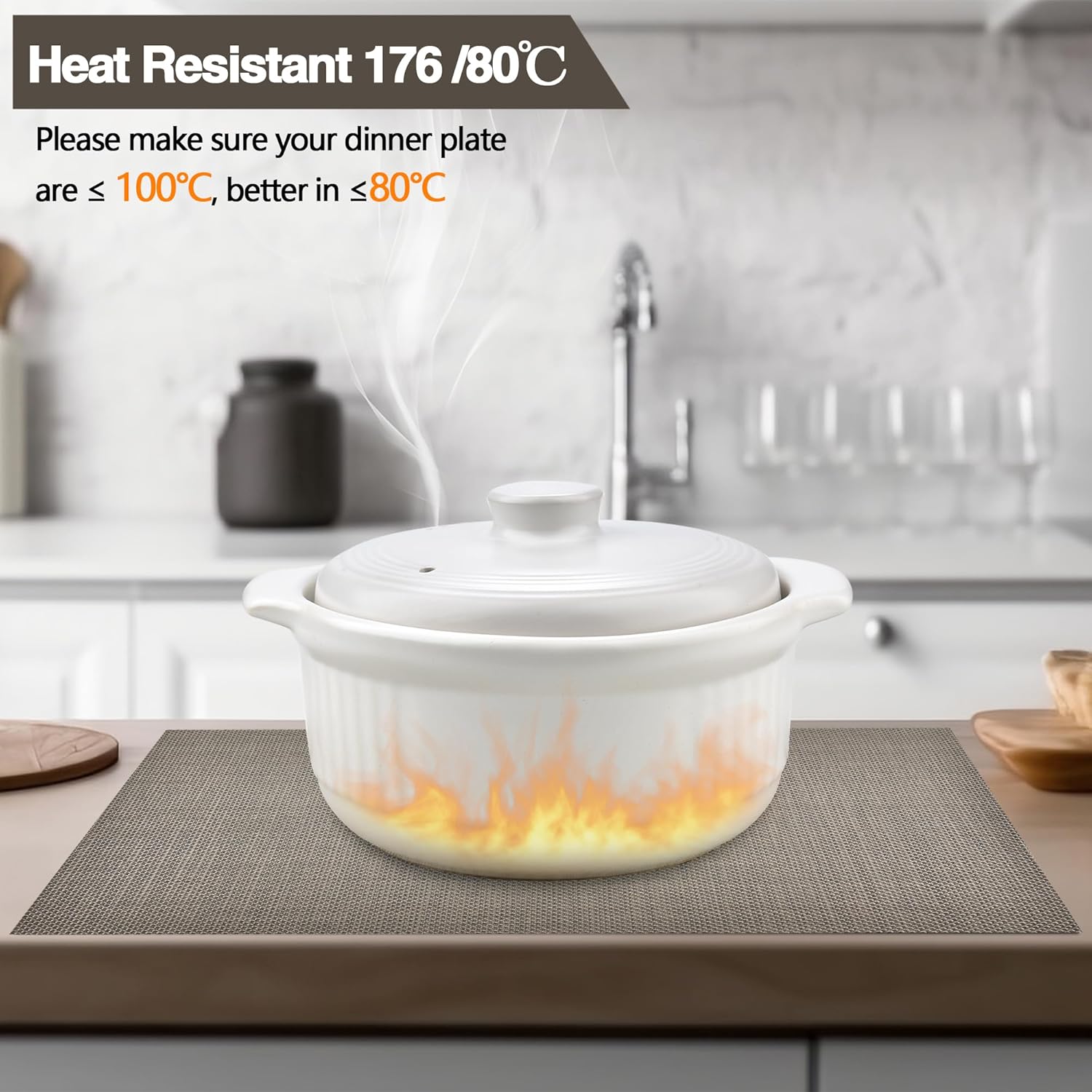 • Heat Resistant: Please make sure your dinner plate are ≤ 100℃, better in ≤80℃. It can prevent the table from slipping and scalding the countertop. These beautiful stylish vinyl place mats to add more fun to your dining table