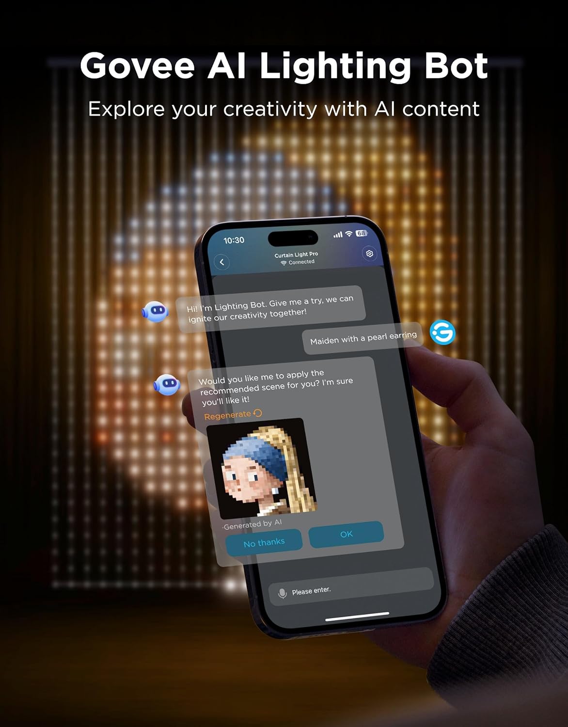 • Smart Ecosystem Experience: Pair these smart DIY curtain lights with Matter, Alexa, and Google Assistant for seamless voice control. Use Govee Home App to individually control the color of each Govee light for indoor and outdoor decorations