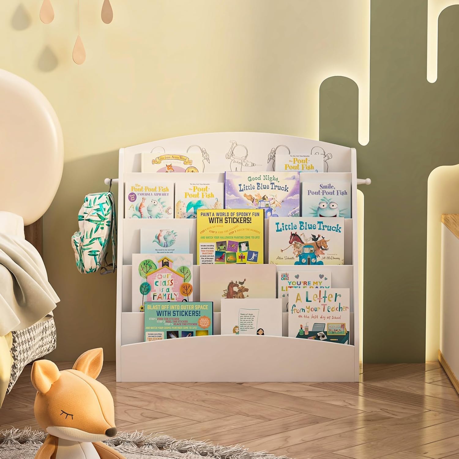• Child-friendly Height and Design:The height of this front facing montessori bookshelf is not chosen randomly. This kids bookcase is deliberately designed to meet children' height. Our baby bookcase is standing on the floor at just the right level for all toddlers and preschoolers.