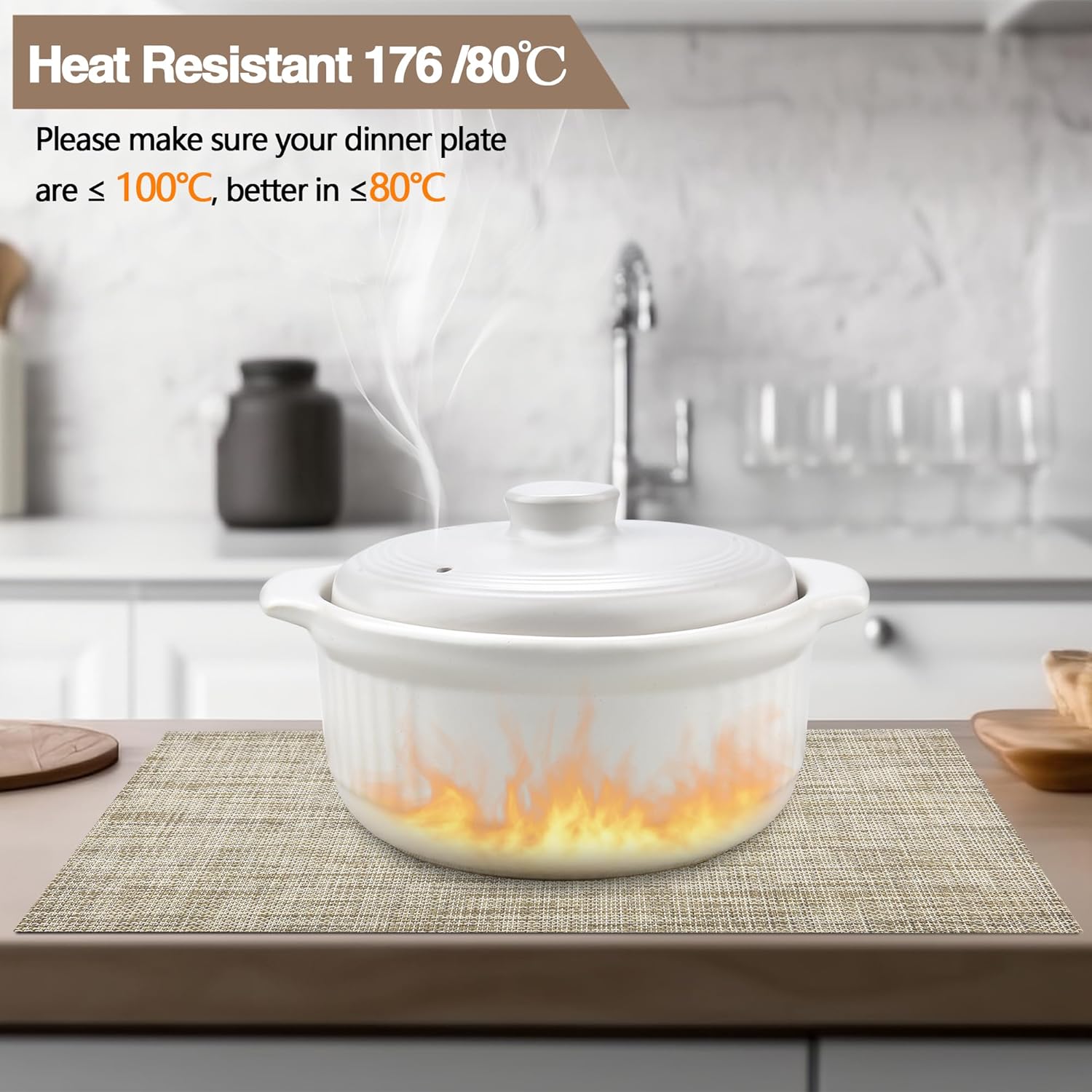 • Heat Resistant: Please make sure your dinner plate are ≤ 100℃, better in ≤80℃. It can prevent the table from slipping and scalding the countertop. These beautiful stylish vinyl place mats to add more fun to your dining table