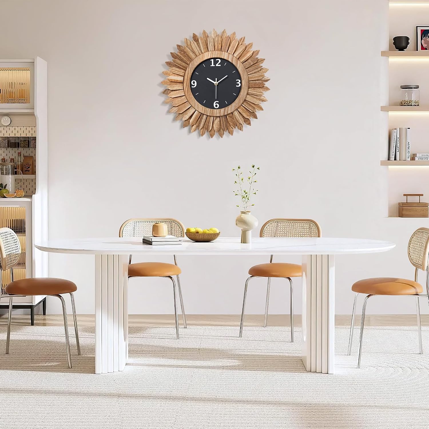 • Boho Wall Decor Clock: Inspired by the sunburst of Bohemian style, this modern wall clock face design is unique and eye-catching, 2 tier wood sunburst looks like the "sun". With a black wooden case, white hour, minute and seconds hands and large white arabic numerals, this decorative wall clock is easy to read from a distance
