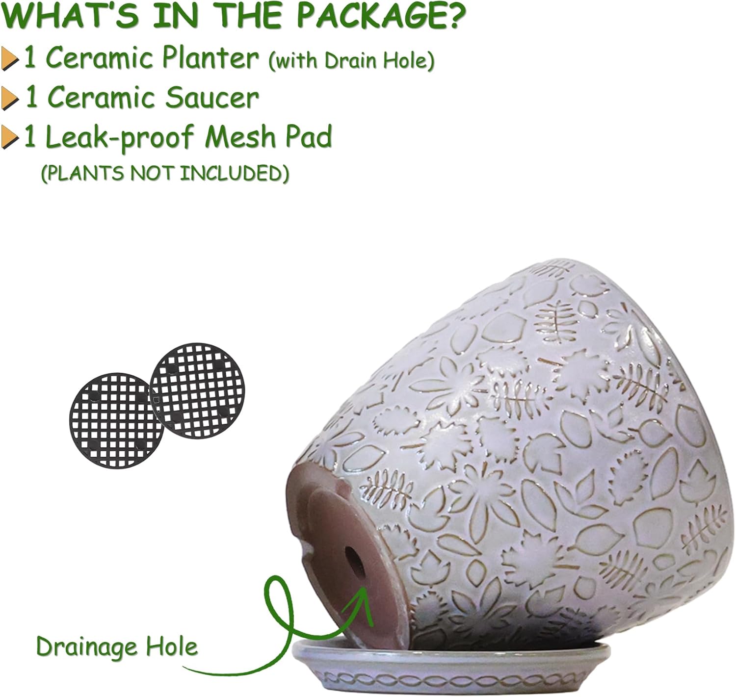 • Size & Package: 10 Inch Pot . Package: contains 1 ceramic flower pots, 1pcs mesh pads and 1pcs saucers(NOT INCLUDE PLANTS)