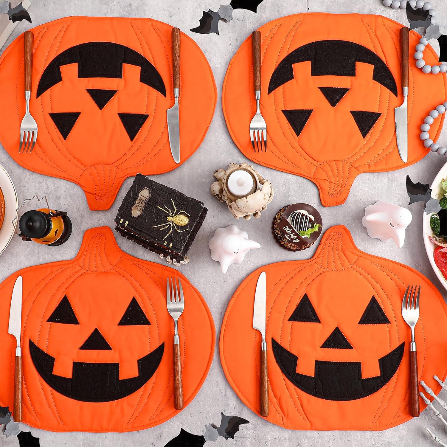 • Pumpkin Shaped Placemats: you will receive a set of 4 Halloween pumpkin placemats, featuring a simulated Jack o Pumpkin design that adds festive charm to your dining table; They are composed of classic orange and black combinations, idea for creating a harvest and spooky atmosphere at family gatherings or holiday celebrations