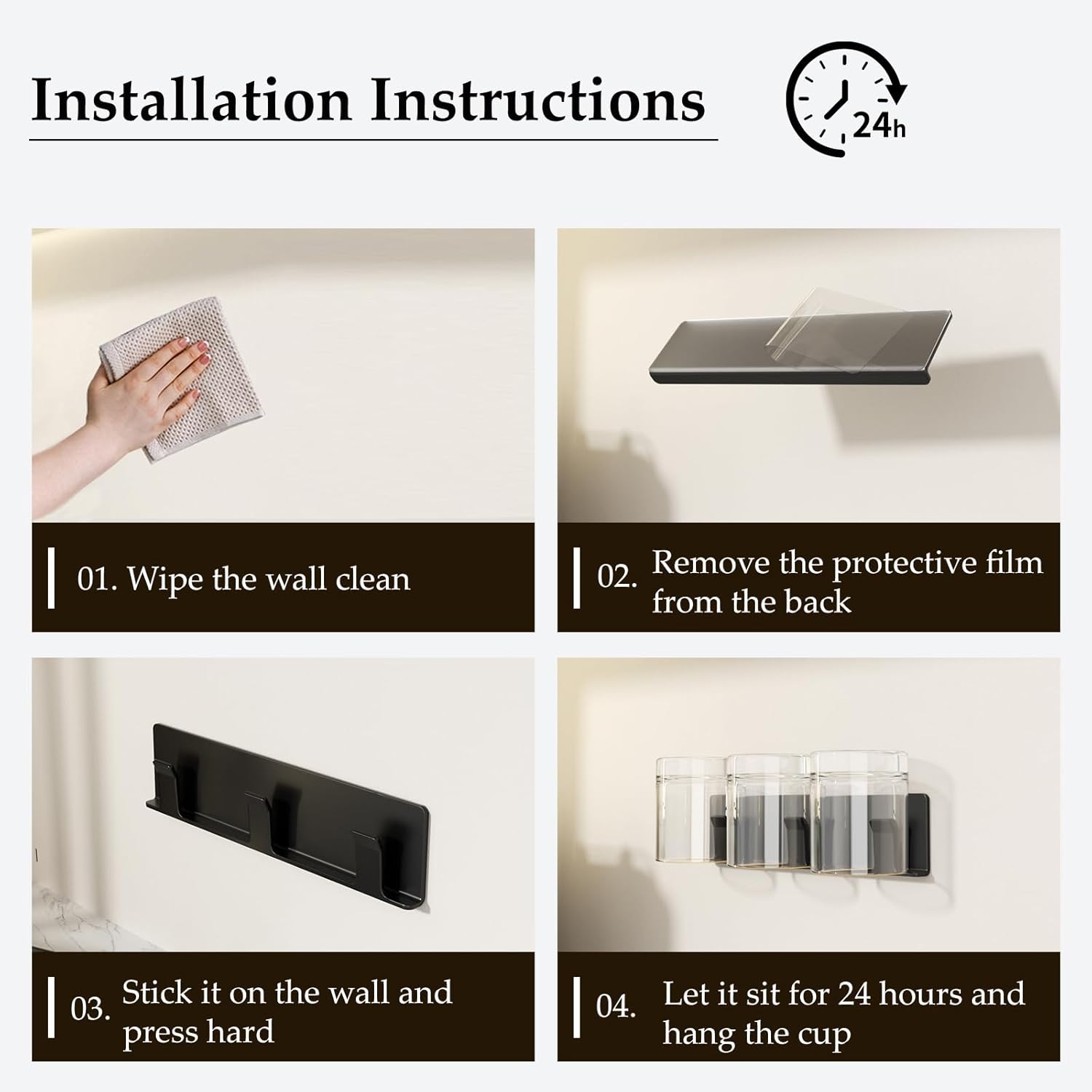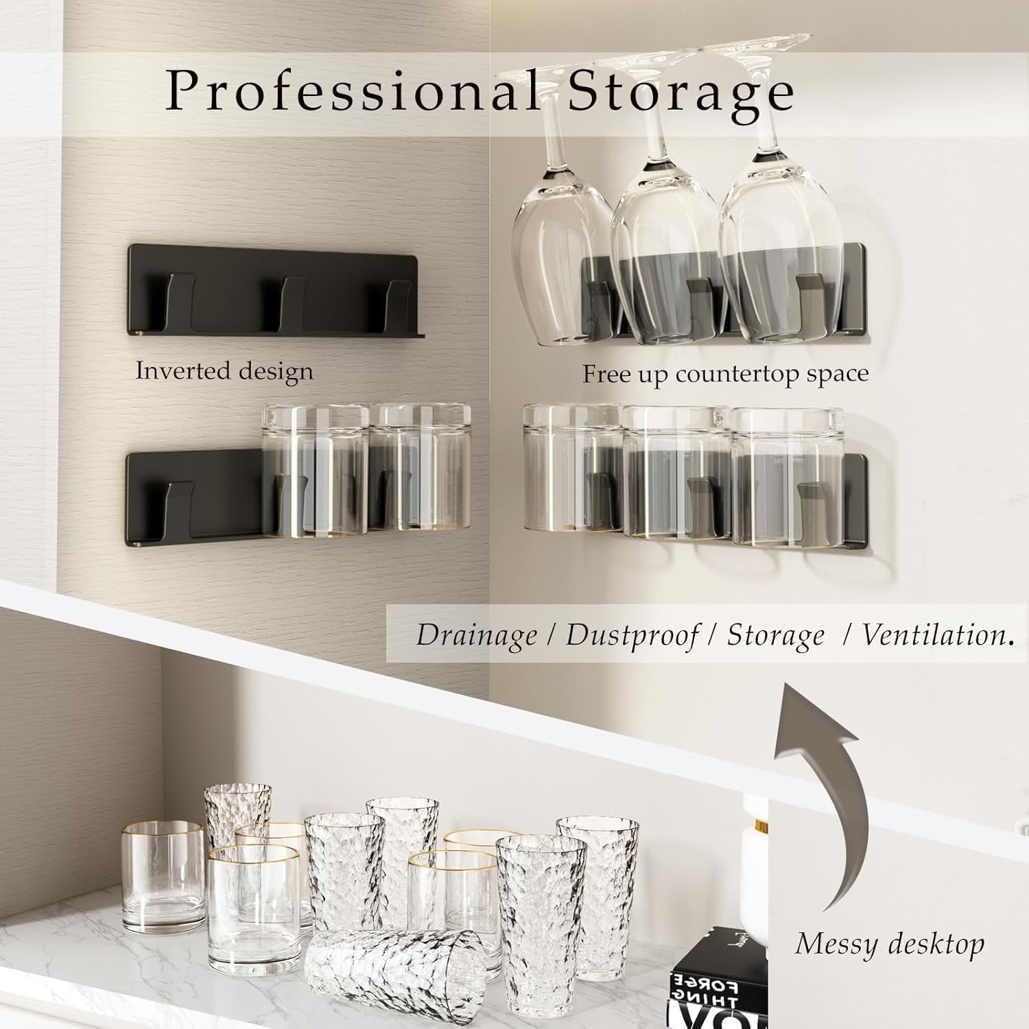 Cup Holder, 4 Pack Wine Glass Holder,No Drilling Installation Wine Glass Holder Wall Mounted for Dining Room, Kitchen and Bar Daily Use (Classic Black)