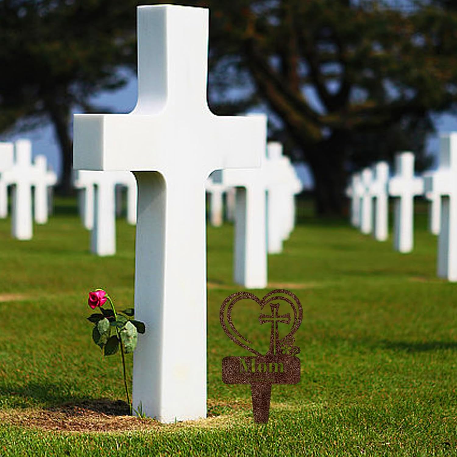 • Mom Graveside Decorations for Cemetery Size: Memorial Grave Stake for cemetery size is 12.5*7.2*0.04 inches, the pointy design on the bottom allows you to easily insert it into the ground and stand firmly. Please make sure the size is right before buying
