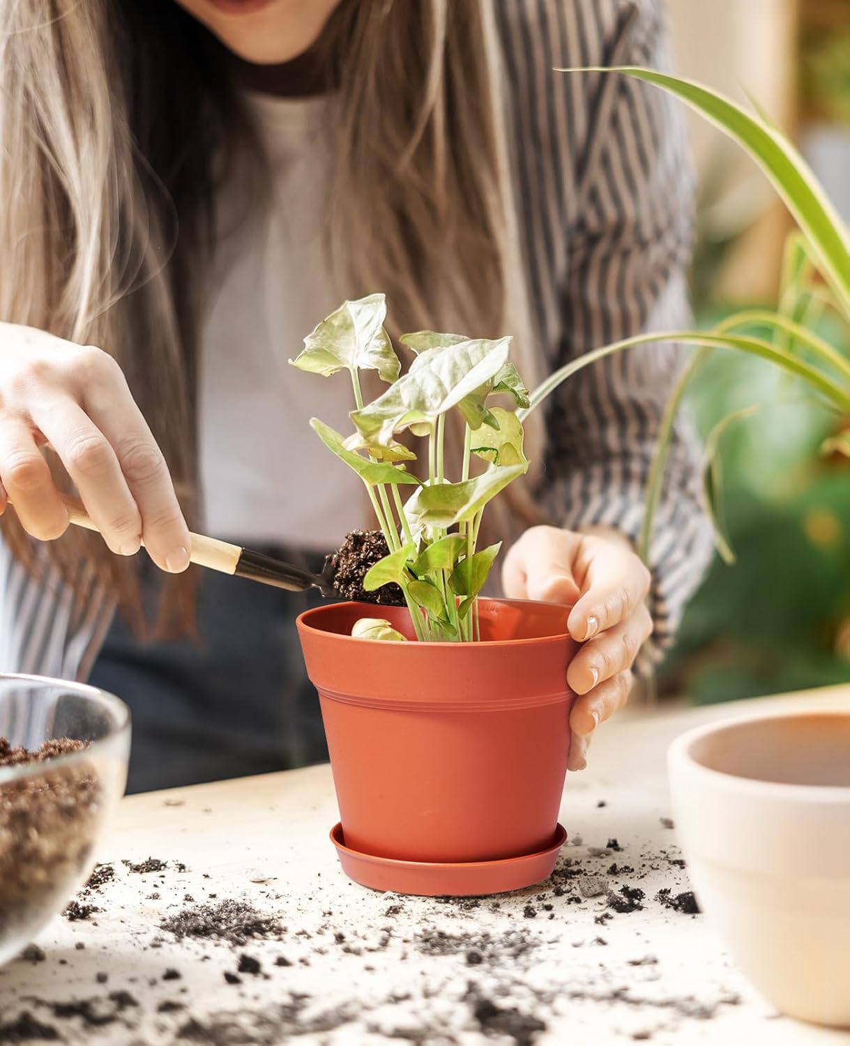 • 【Excellent Drainage System and Matching Tray】The porous drainage design of this plastic plant pots solves the drainage problem,and the small holes of arranged at the bottom can ensure that the drainage system will not be blocked and it also will not cause soil leakage.And pots for plants are provided a removable tray to collect excess water without worrying about leaks and damage to the floor,perfect for indoor use.