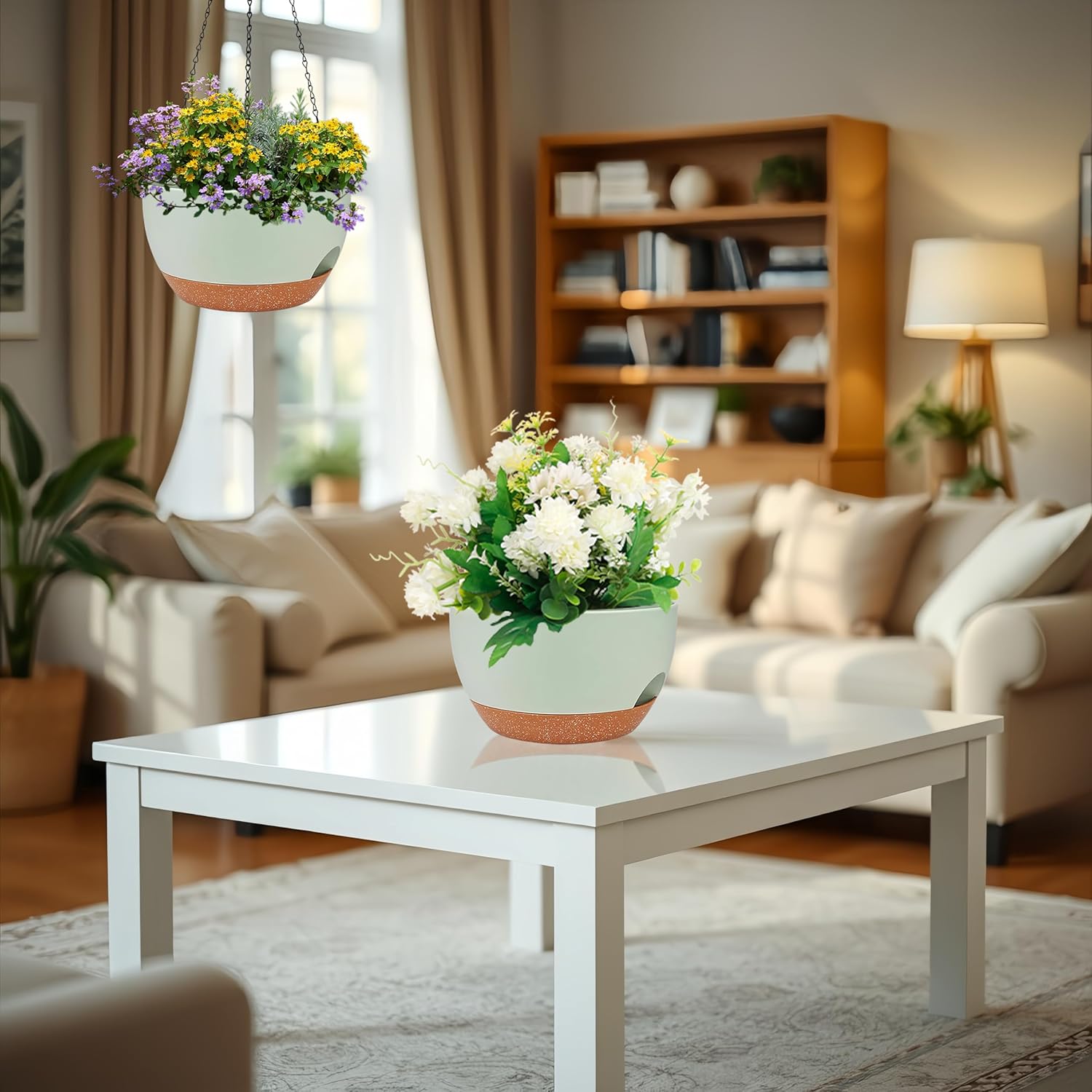 • ✅ 2 Large Self-Watering Planters: Double the value! Includes two 12-inch wide plastic hanging planters with built-in self-watering reservoirs to reduce the need for frequent watering and keep plants healthier.