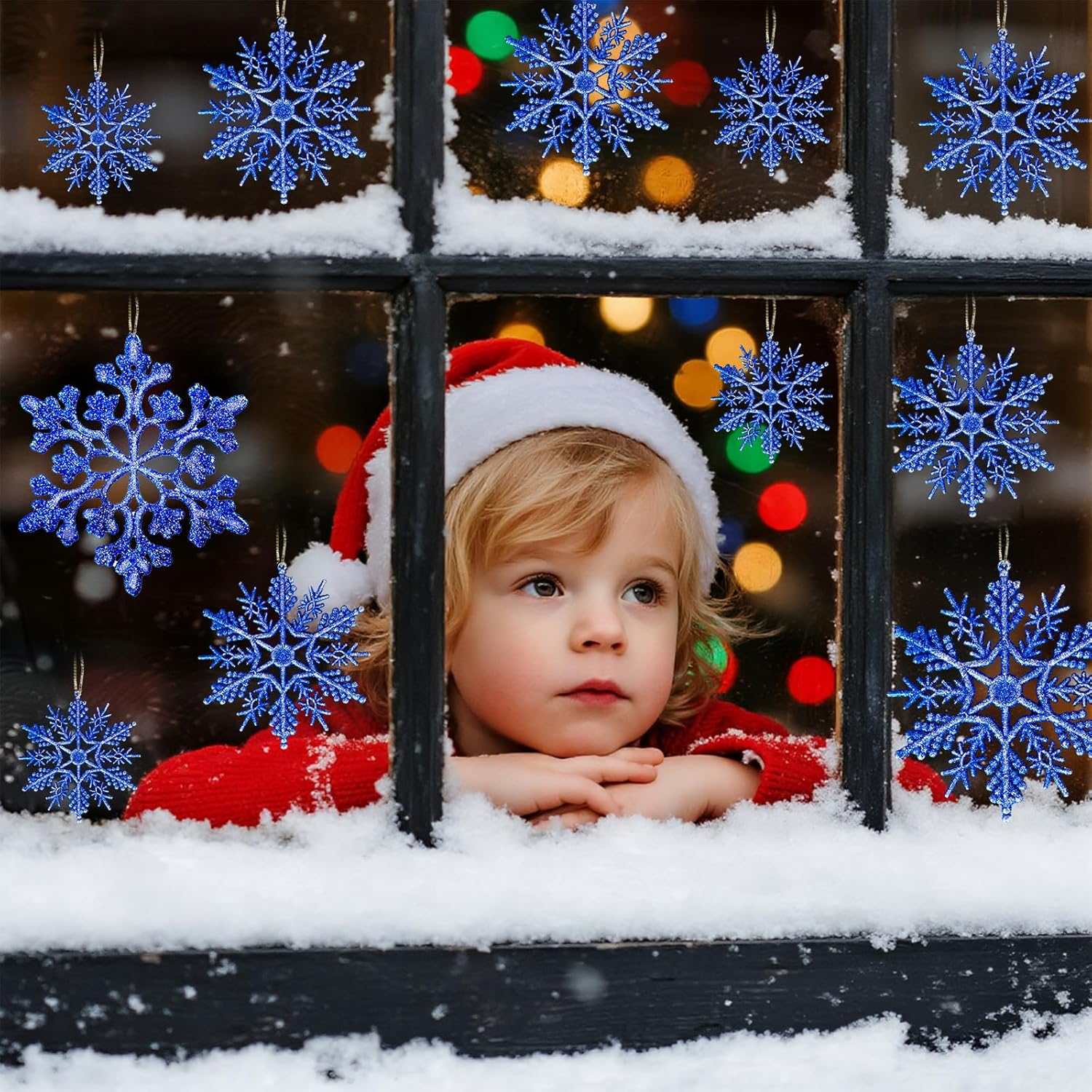 • Easy Hanging, No Hassle:Each piece includes a pre-punched hole and a silver string, perfect for hanging christmas decorations quickly and neatly. Whether you’re creating a garland or hanging snowflakes from ceiling, they’re easy to install and reposition as needed