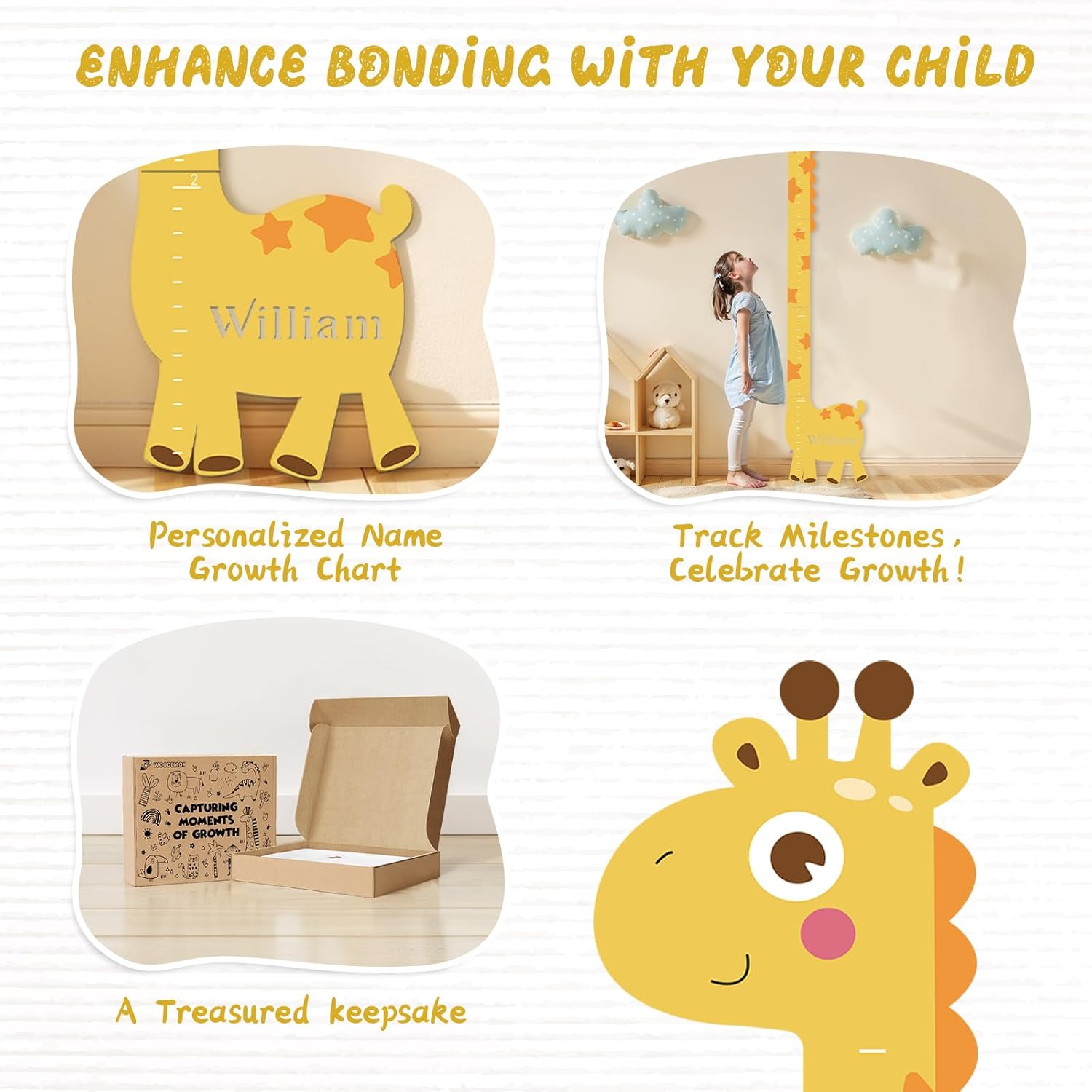 Personalized Name Growth Chart for Kids, Giraffe Height Chart for Boy Girls, Measuring Board for Kids Height, Patchwork Wooden Height Chart Measuring Board, Nursery Growth Chart Ruler