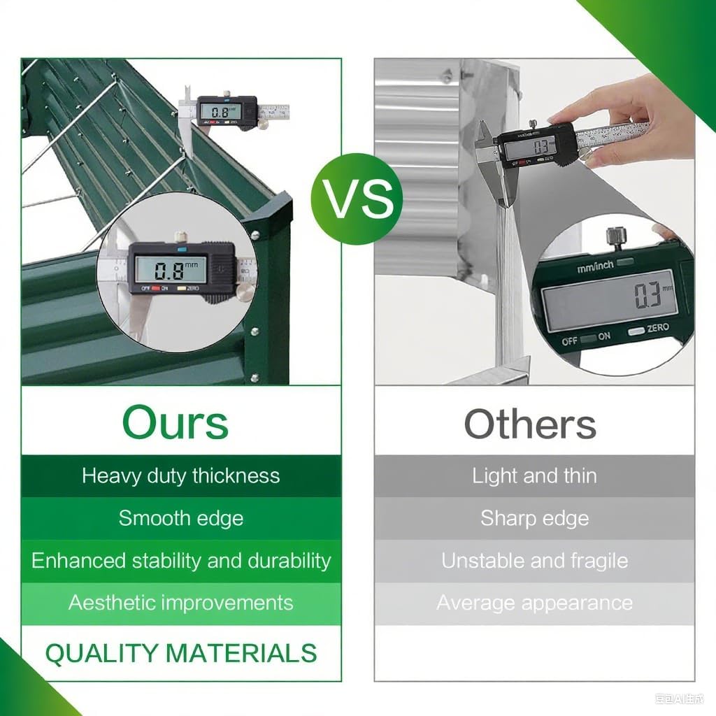 • DURABLE GALVANIZED MATERIAL: GARDMAX outdoor raised garden beds are made from 0.8mm heavy-duty galvanized material, ensuring exceptional longevity and durability. It is more resistant to high temperatures and freezes, making it very suitable for outdoor use. And this metal will survive the elements for decades, but when you're ready to replace it, the metal is entirely recyclable