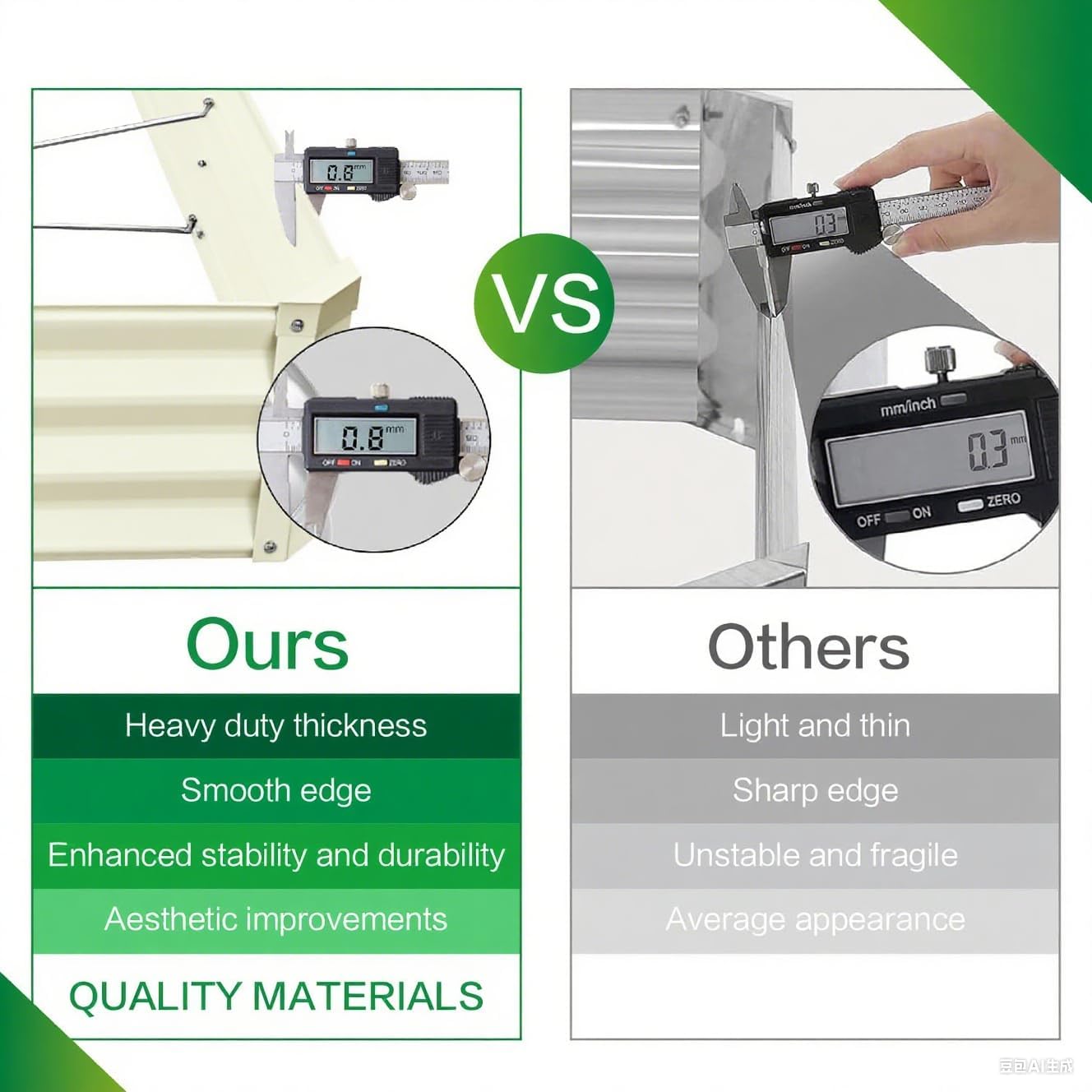 • DURABLE GALVANIZED MATERIAL: GARDMAX outdoor raised garden beds are made from 0.8mm heavy-duty galvanized material, ensuring exceptional longevity and durability. It is more resistant to high temperatures and freezes, making it very suitable for outdoor use. And this metal will survive the elements for decades, but when you're ready to replace it, the metal is entirely recyclable