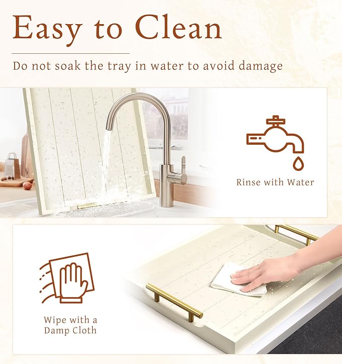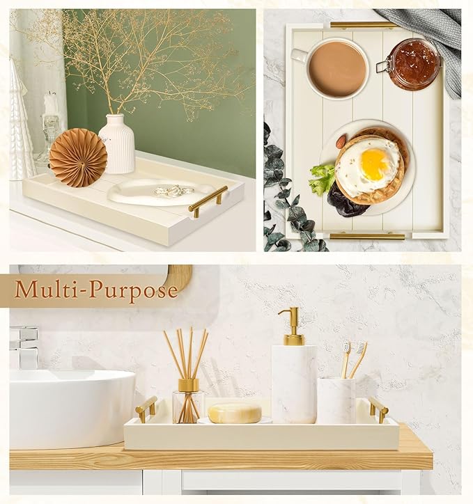 • 【WHO DOESN'T LOVE HANDCRAFTS?】Have to say our rectangle white wood serving tray is so functional and stylish at the same time. Every paint process is completed by our hard workers, who aim to make each beautiful tray to prevent splinters, paint chips, and scratches. It's lightweight but sturdy enough to be used as a coffee table tray for the living room.