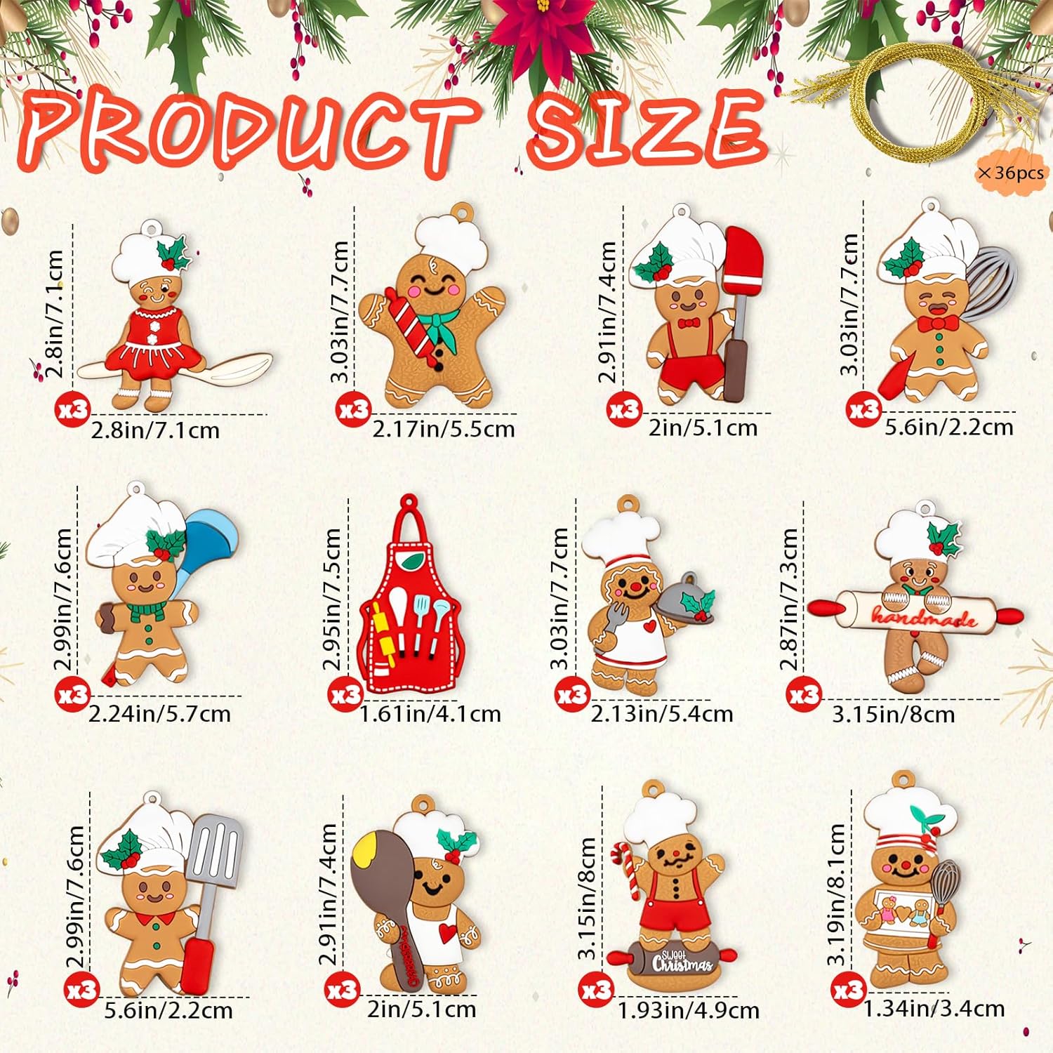 36pcs Gingerbread Christmas Decoration for Tree - Cooking Gingerbread Man Ornaments Christmas Hanging Decor for Christmas Tree Home Kitchen Decor Party Supplies