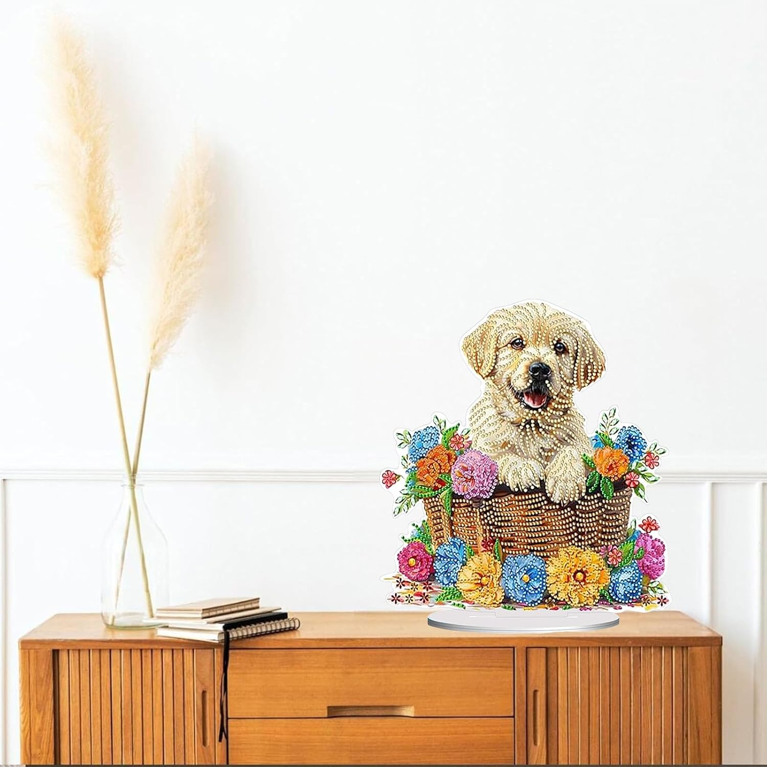 Diamond Painting Kits for Adults Beginners, 5D Full Drill Dog Crystal Art Desktop Ornament, DIY Single Sided Home Office Desk Decor, Creative Craft Gift Set with Tools