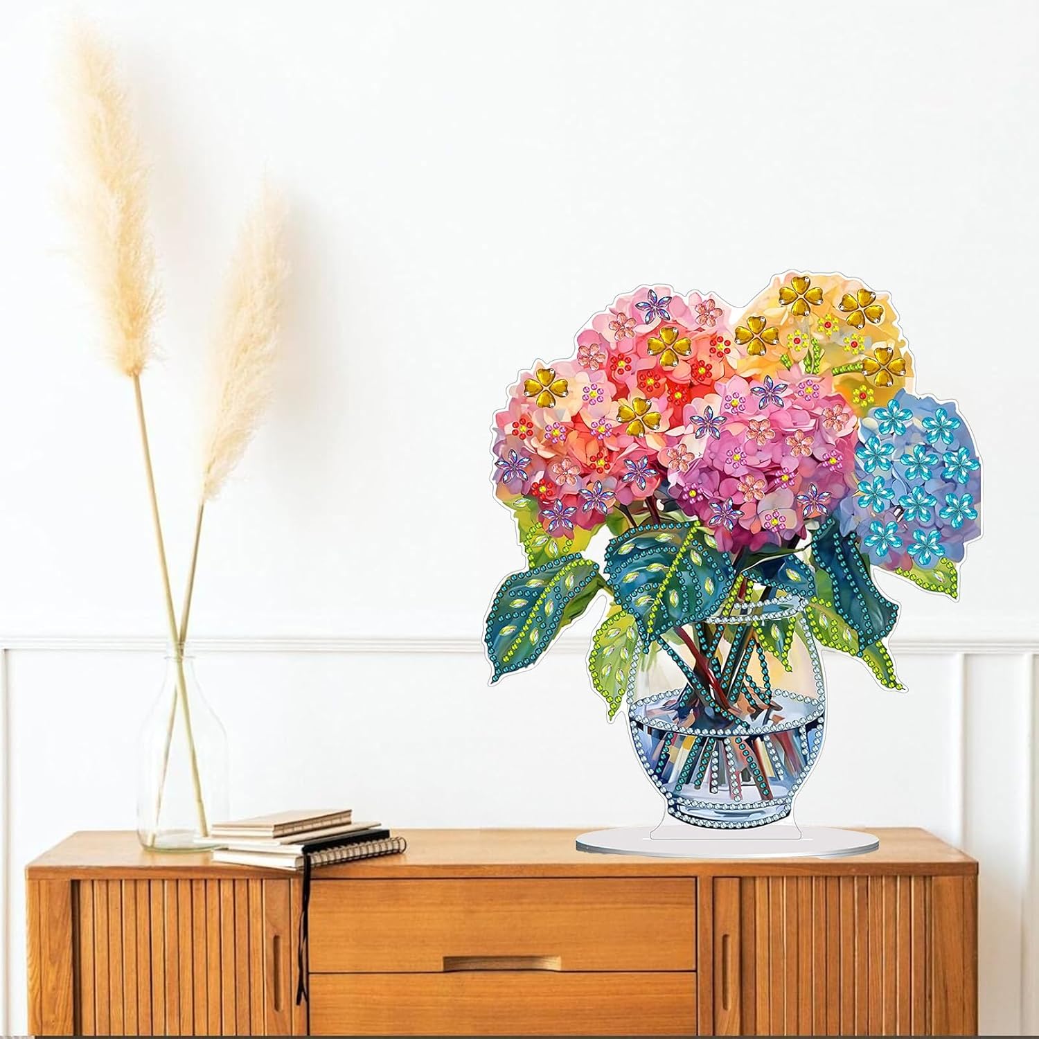 Diamond Painting Kits for Adults Beginners, 5D Full Drill Flowers Crystal Art Desktop Ornament, DIY Single Sided Home Office Desk Decor, Creative Craft Gift Set with Tools