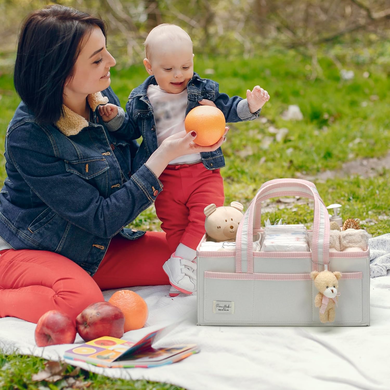 PeraBella XL Diaper Caddy Organizer With Handle, Baby Shower Gifts Basket Bag, Registry Search Must Haves Items, Newborn Girl Boy Nursery Storage Organizer, Baby Bag Essentials, Car Diaper Caddy Cart